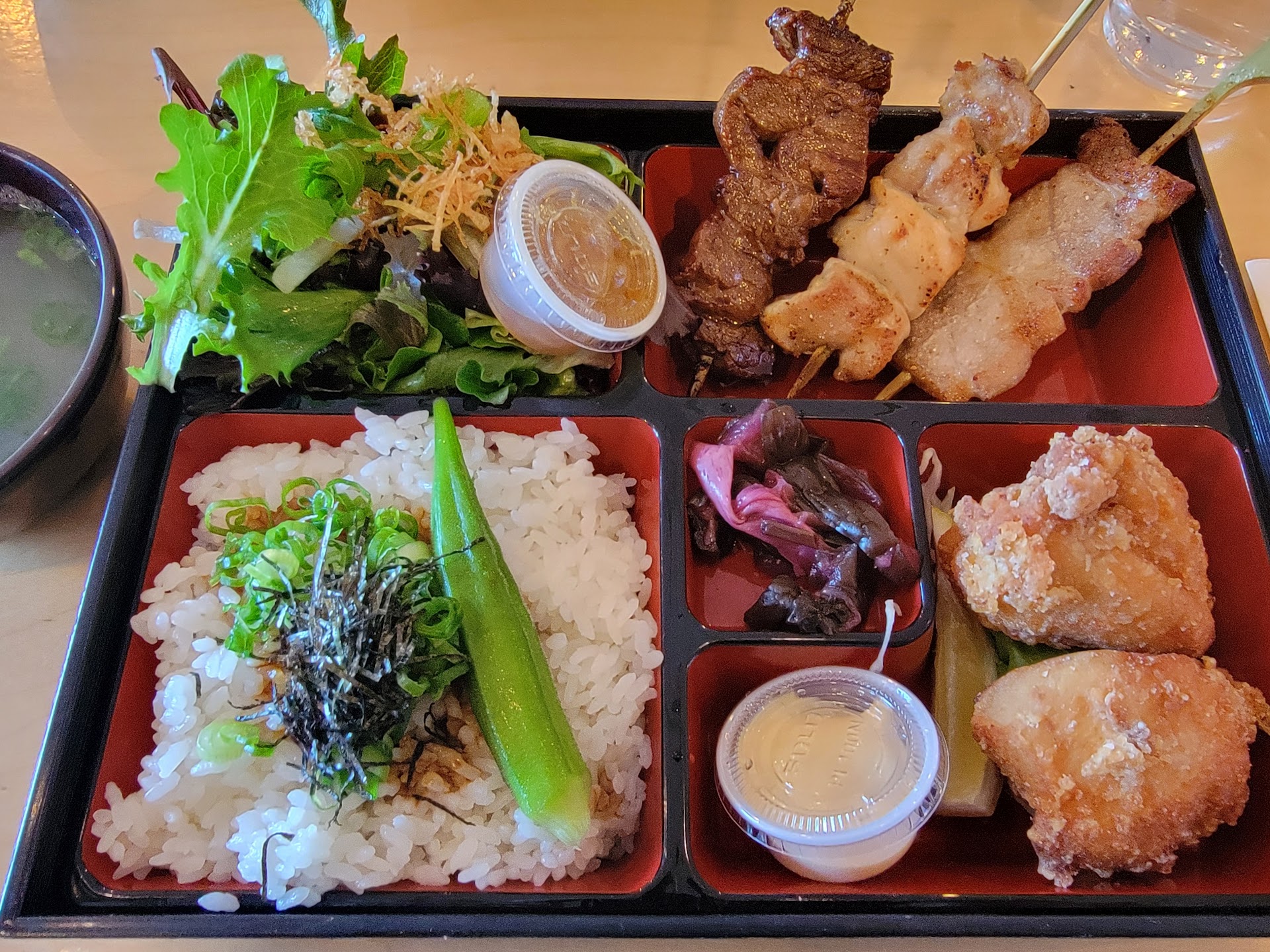 Read moreGrabbed some takeout from here since it was walking distance to my hotel and I'm glad I did. Everything I had was very good, but the nasu agebitashi (marinated cold eggplant) was absolutely delicious. The grilled saba in my bento was also notably good, and the various yakitori skewers were all above average, as well. The soboro rice is worth the $2 upcharge, as well. It was pretty good and plentiful. The only thing I'd mention otherwise is it's a tad pricy for takeout, but with the current 20% discount for online orders, it was a great deal. I may even eat there again...