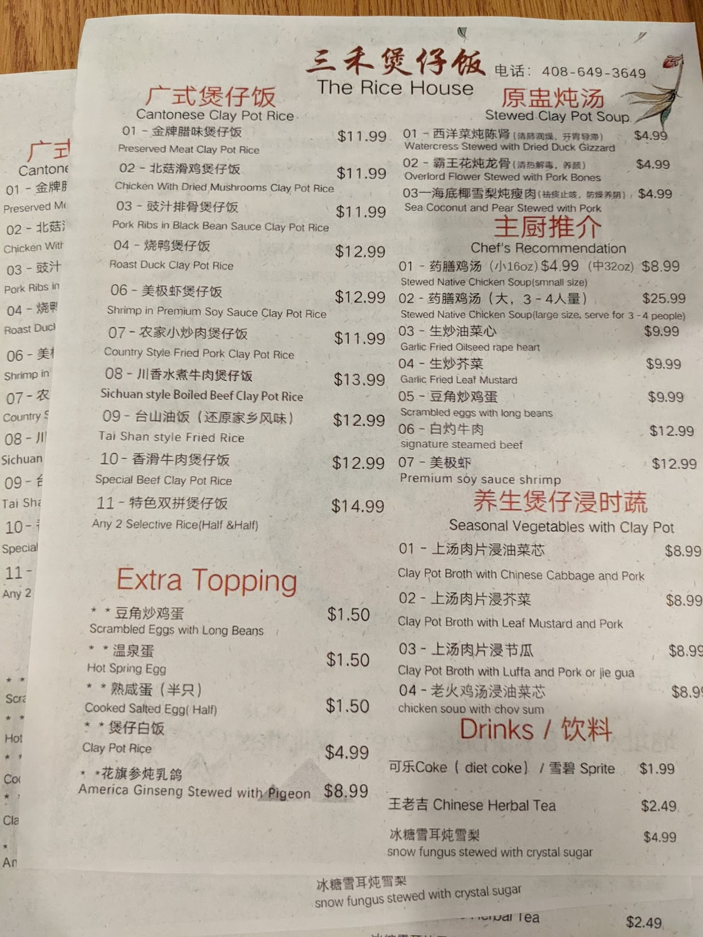 Came here for lunch. Place is a hybrid restaurant/cafeteria style. You order at the register (cash only). Their Clay Pot Style rice is unique in which they cook it in a clay pot, but bring it out to you in a disposable to-go container. In fact, all their food are served in to-go containers. Their Clay Pot rice had plenty of meat. What's cool is even though it's in a to go container, there's burnt rice on the bottom. The vegetables in the Clay Pot was a disappointment as there were only two pieces of broccoli. I recommend ordering another side order of vegetables. You can skip their apps because their portion size can be deceiving as the container looks small but in fact it's pretty big. If your a soup addict, go for their chicken soup (served in a to...