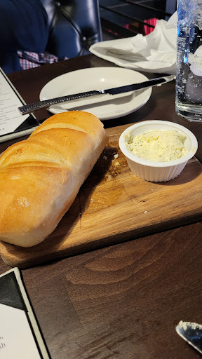 For our meals, my husband noticed the lasagna was listed twice on the menu; once under pasta for $12 and also under entrees for $19. My husband asked the server what was the difference. We were told portion size. In my opinion this should only be listed once with both sizes and prices in the same listing. At other restaurants you do not see meals with different portion sizes listed in different places. For example half rack ribs and full rack ribs or ribeye 12 oz and 16 oz. I did not notice the separate listing. My husband decided to go with the smaller lasagna and a side of linguine with house sauce. I ordered chicken Alfredo. We also ordered a side of garlic bread.