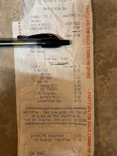 knots dried up. called the milton location on dogwood to give them a chance to fix the issue and it only got worse from there. lady answered " pizza hut hold please " 5 minutes later she came back and I told her the issue I had and she asked if I want credit or remake I said credit would be fine. she puts me back on hold without saying anything. another lady picks up the line 5 minutes later and says " this is heather can I help" I Tell her I've been helped already and she talks back with a rude tone I'm the manager shes passed the call over. so I had to explain everything all over again. but now this time shes second guessing my issues saying thats wierd i made the garlic knots myself today. that's wierd the pizza was on time. then she says I'll give you a credit of 20$ under your phone number and I said ok that will be fine. and she hangs up. I felt like she was bothered by me calling and having a issue. and she...