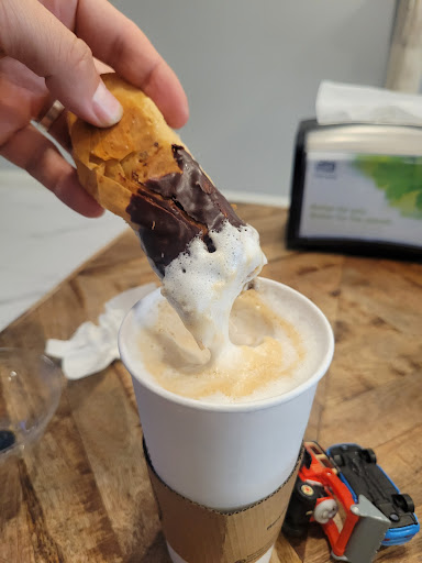 Atmosphere: The exterior and interior are just stunning! I love how the outside has this clean honey aesthetic, and then I go inside to find a clean, modern, chic vibe inside! I was truly amazed (just ask the workers, hah). They even have a small space set out with items that come from Greece—available for purchase! Service: The people here are so kind! I got help with choosing among sweets that I was wanting to try and even got to chat with them about my foodie page for a little bit! Menu items: I got their Cheesecake Cognac Ganache (in round form), their Sokolatina, and their Churro Latte special with almond milk! The Cheesecake Cognac Ganache is absolutely delicious; the consistency was thick with the perfect layer of chocolate on top to add that rich sweetness for flavor. The Sokolatina is a rich dish with a lighter consistency than the cheesecake. And lastly, the Churro Latte had a lighter taste in comparison to the sweets but made for a great combo with the desserts!🍰🍫☕️