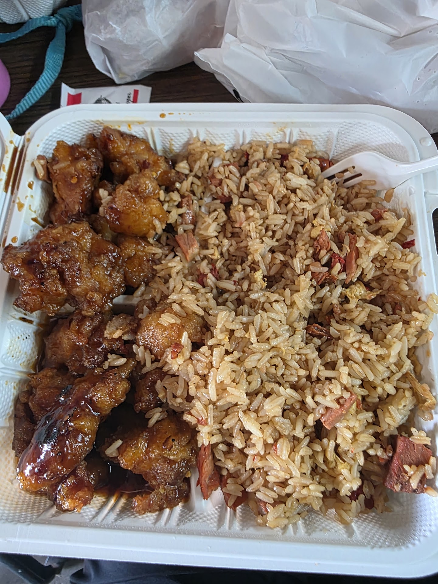 Next, I opened my fried rice...very dry...and not hot. Okay. Strike three.