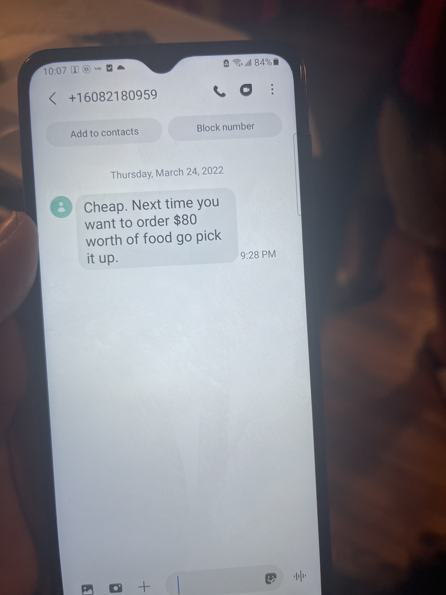 What a total let down. If I had a car I would drive there and give them everything back. 21.55 in food, not sure I can eat any of it. My driver was decent, gave him a 4.00 tip. He ended up far better off than I did.