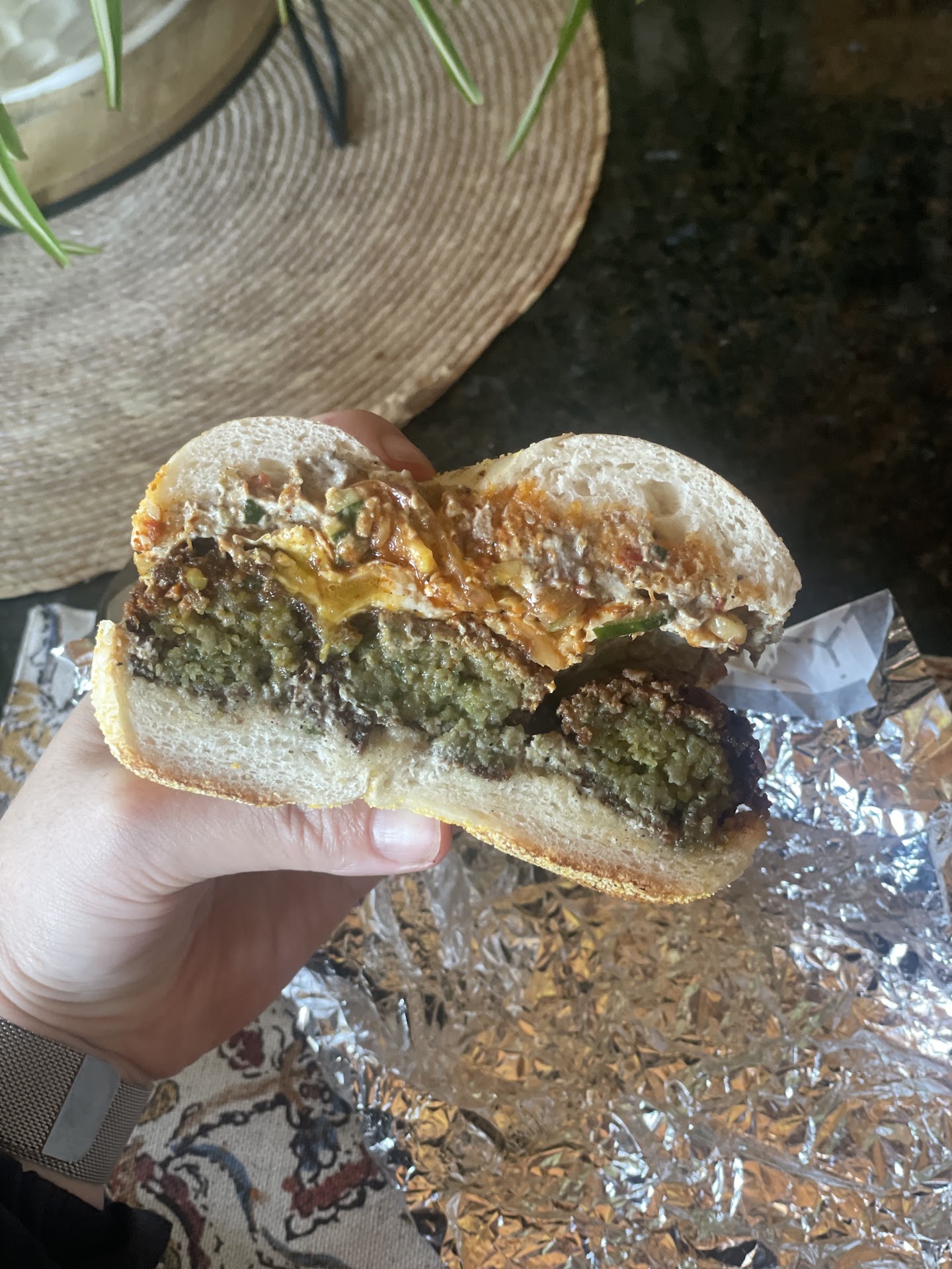 This may be the most confusing sandwich I’ve reviewed. Every part of it demanded my attention. Bagel: spot on. Lox: bold and subtly briny. Cream cheese: dense and abundant. Dill: very present. Tomato, onion, and caper: hey, they’re just happy to be working with such an incredible cast. Any attempt to focus on something other than the barrage of aggressive flavors or the unwieldiness that any bagel sandwich possesses was in vain. It’s like being unable to think straight when the music is too loud but with taste. This sandwich is loud and fun and on the edge of repulsive, which makes it all the more compelling. The bagel is a hug, the lox is a slap to the face, and the intensity of the dill is a whisper in the ear that does things to you that you don’t understand.