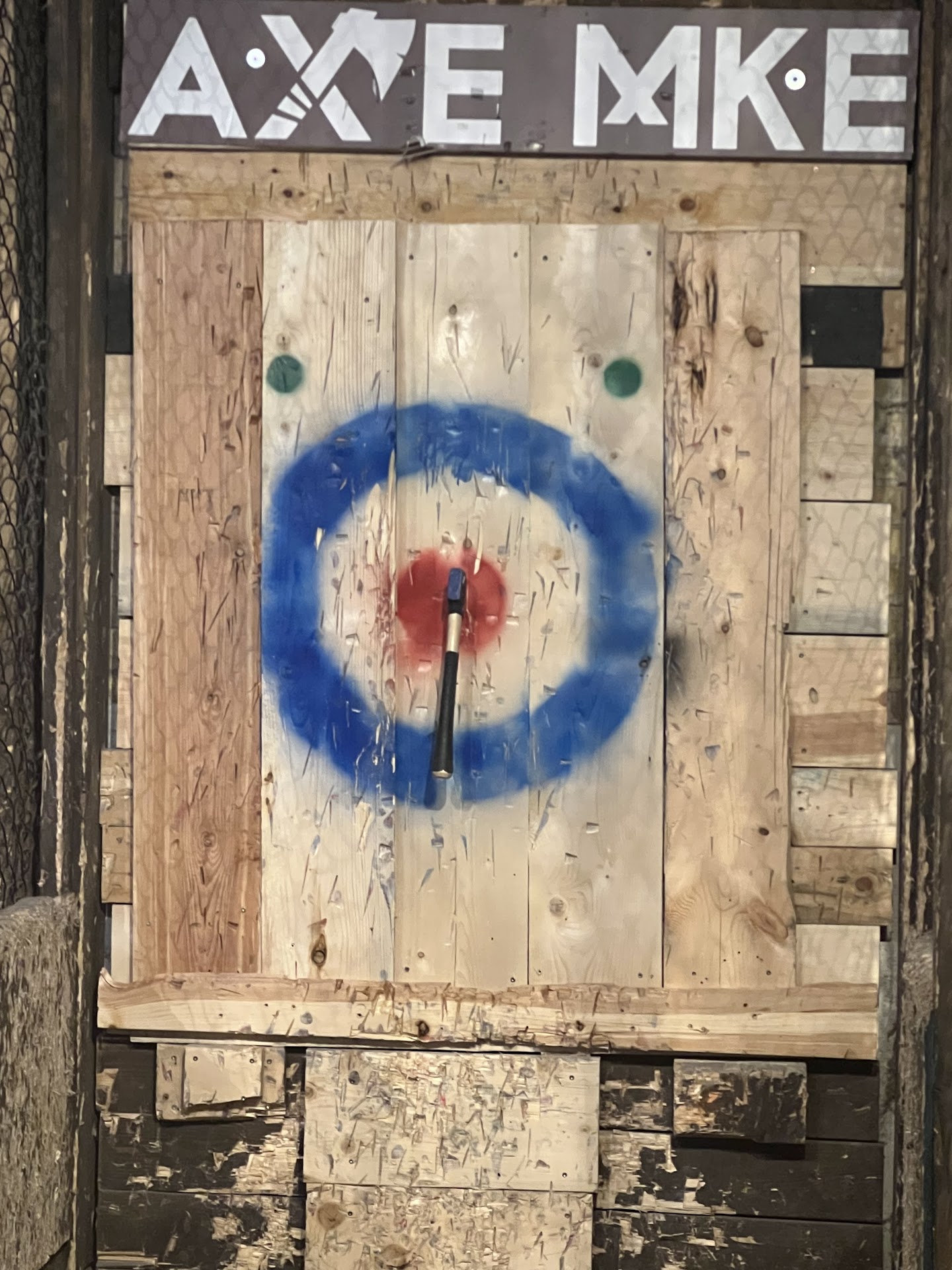 A surprisingly unique experience to be had in the downtown Milwaukee area. AXE is a creative take on the ubiquitous tavern/bar scene in Wisconsin in that axe-throwing is the main activity! I say axe-throwing, but for those that are a little intimidated, it's actually more like hatchet-throwing. Alcohol + axe throwing = fun in my book. First of all, let's talk about the safety concerns....the way the owners have set up the activity is very safe. There are multiple lanes for throwing that are all divided from each other by wood and welded wire fencing. There's simply no way anyone in an adjacent lane can hit someone in the next lane over. In addition, they provide a thorough safety briefing and training before you start and they have attendants present the entire time to make sure everyone is acting appropriately. Successful throwing is actually surprisingly simple once you get the hang of it, but hitting your intended mark takes some focus and practice. I promise you'll enjoy the time spent trying. With respect to the rest of the premises, the space is large and can handle large groups provided you call in advance to reserve time. The full service bar is simple and uncomplicated and fits in well with the rustic theme used throughout the building. The end result is that the focus is really on the interaction with your party and the bar itself is secondary. That's a nice change from the usual layout found. Obviously, when multiple people are throwing axes it can be a little loud so don't expect to have quiet conversations in this place. Go here to try something new and blow off a little steam and you'll leave having had a good time. And if you have trouble getting your axe to stick, don't get frustrated...ask for help and plan to come back for...