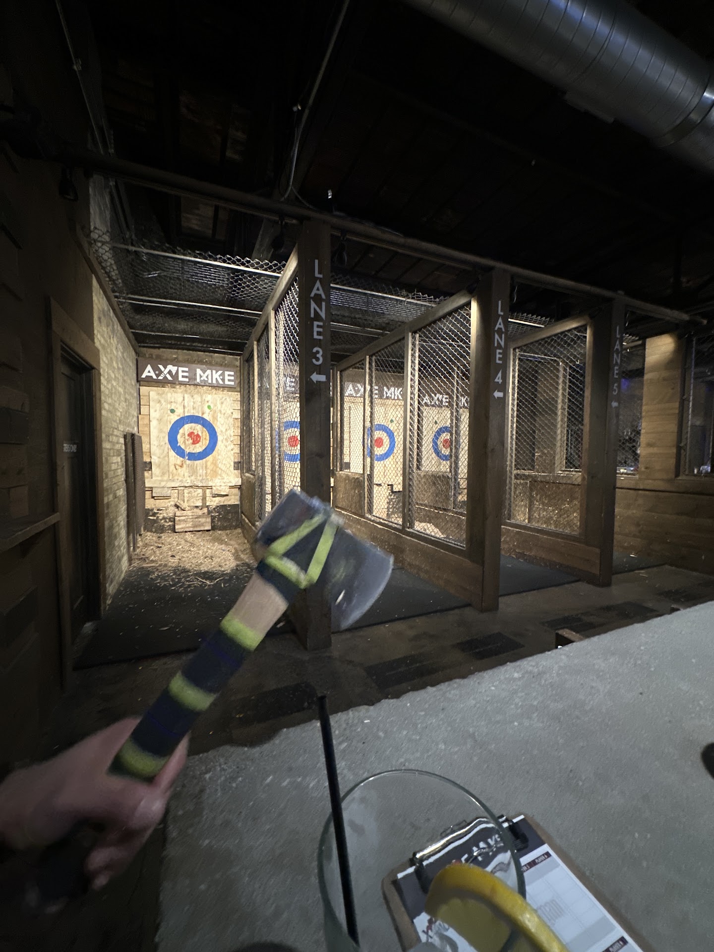 So, we went in early. They are not fully open for another two weeks, and in that time between they are doing a soft opening. Right now there is still some building going on but the bar and six throwing lanes are open.
