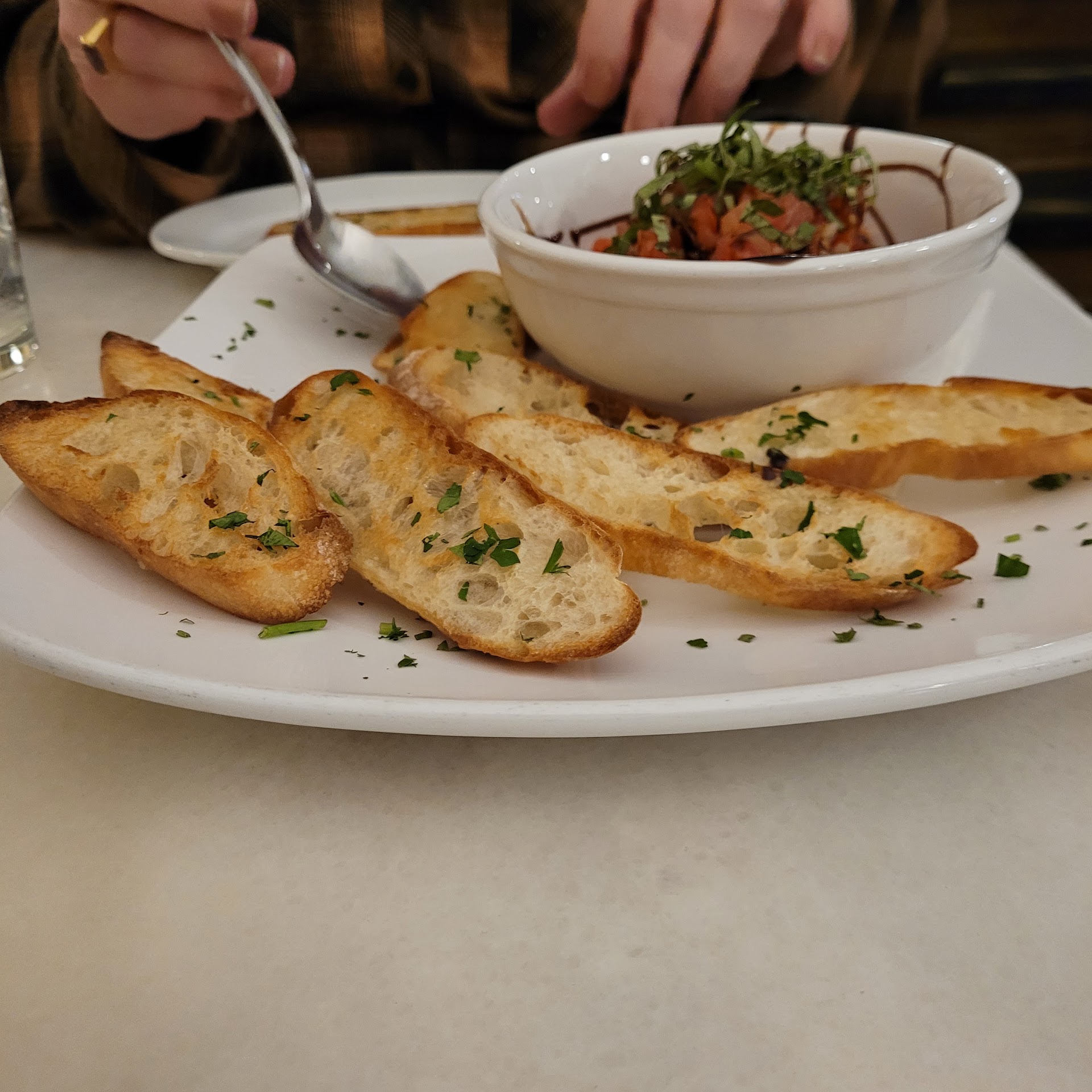Saying this establishment is unique is an understatement. Let's cover the restaurant first. So when you enter, you pass in front of the kitchen. It's a small facility, but guess what? It works. Intimate classy dining. We had a delicious small pizza, but the brushetta (sp I know was fantastic but there should have been a warning of the triple garlic that was added. I needed a half tube of mentos to make me just alittle comfortable to basically talk to my gal. This was our pre-valentines date. The cool surprise was the feature band walking thru the front door playing jazz music. After dinner was the real treat. We seen this band before at a beer garden, but inclosed they sounded even better cause this group is very tight in sound and extremely entertaining. The bar was packed and hitting on all cylinders. Please support your local venues cause they too...