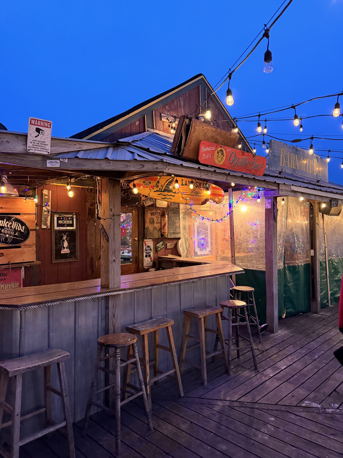Read moreThis was our FIRST time giving Barnacle Buds a visit. First off, the location of this place is HORRIBLE. It's tucked away on an off-beat path behind a tow company and old manufacturing buildings. Took me 15min trying to find parking and this alone built up so much frustration for me. And BEWARE that you will get towed if you aren't parked in a valid parking area and there aren't too many spaces. As we were leaving, a tow truck was coming in. Almost feels like a scam to make money as this tow company knows that they'll be towing a few cars away while you're enjoying your meal. We went on a Friday evening around 6pm. As for the food...meh. I feel it's more of a little burger and fry joint. I wasn't really impressed. The buffalo shrimp were good. My friend had the salmon and rice and wasn't a fan at all. Said it was some of the nastiest food she's ever eaten. Rice had no taste. My heart was set on having cod but the waitress told us that they ran out. Like really!? On a fish fry Friday?? They also ran out of jambalaya (but another friend said it wasn't that good anyway). The drinks were ok. They are served in mason jars. Margarita was fairly decent. I had the Dumpster cocktail which was ok but so much ice waters down a drink. We only had a party of 5 and we were reminded that there was a 2hr dining limit so that put a sour taste in our mouth. The guy just came off a bit rude about it. We're just not use to being kicked out at a certain time. Overall, I'm not one to bash a place BUT I will be honest with my feelings. If you don't mind fighting for parking, sitting on the river fighting flies and mosquitos and having ok food and drinks, this will be for you. I myself will NOT be going back. Unfortunately I didn't enjoy much about the place. Pretty...