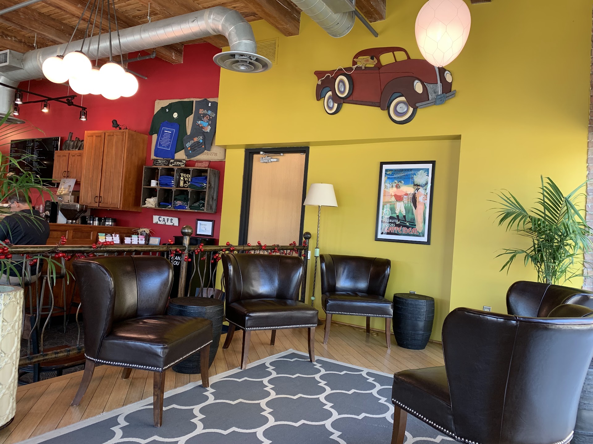 Read moreStumbled across this coffee shop while on a recent business trip. Very poor customer service. After I ordered, the clerk turned her IPad style cash register toward me. I had to type in my own order; I really got the sense that she couldn't be bothered to help me. After I sat down I watched the clerk ring up the next 3 customers herself. These 3 customers were in business attire compared to my T-shirt & jeans. This observation made me regret having spent my money at this establishment. All this cafe really did service wise was to physically hand me my coffee. Then they were out of cream. When I asked for more, the other clerk acted like it was a huge inconvenience to hand it to me. Then I had to open half & half container myself. Afterward it sat out on the counter for several minutes. My coffee was terrible. It tasted sour and metallic. The only positive I can mention is that I enjoyed the cafe's decoration. Cool tables and comfortable leather chairs. However after my terrible experience, I had no interest in staying and enjoying the décor.
