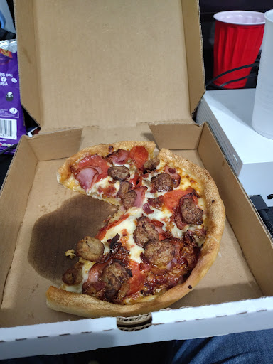 First of all the guy didn’t know what kind of crust they had, it was our first time and didn’t what size to order. They had a special for a 3 topping pizza along with a 2lirer of soda for 20.99 +tax . We decide to take for the matter of fact it was our first time and we made that very clear. We also ordered a piece of cheese cake which I could not see due to the fact they had it sideways and on the top shelf. When we got home the pineapple was missing not sure dipped the onions in pineapple juice but there were no visable or edible pineapple pieces other then that it wasOK it was a lg hand tossed with a pan style outer crust the sauce was mild the sausage was meaty and the onions were red and finely sliced. It also came with a small side of spicy ranch for the crust.the cheese cake was so little it was like a 3rd of a real slice for 4.50 also the dining room chairs were very stained and dirty. Service was ok but they need to know more about what they are selling. Especially for us first timers. We would go again but cautiously. No cheese cake and definitely take home .So hopefully they learn from this make some improvements and make some friends in the...