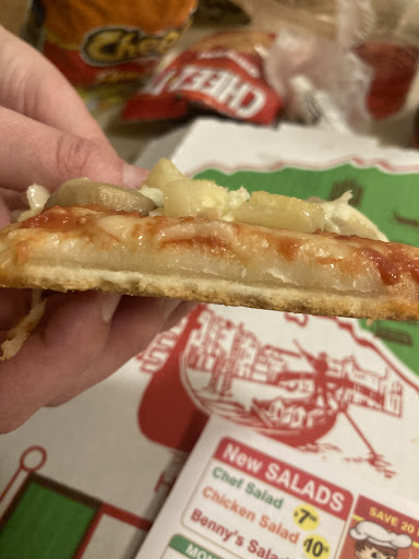 Read moreOrdered a Pepperoni, Sausage, Green Pepper, Onion, Mushroom pizza, My standard, and wasn't disappointed at all. The thin crust was crunchy, & firm, Pepperoni burst with fresh flavor, likewise with the sausage. The green peppers, onions and mushrooms were fresh, all enhanced by a flavorful sauce with tang, and generous mozzarella cheese with it's own tang. What keeps this from being a five star rating was while ordering it, the Person taking the order seemed annoyed, and after each ingredient asked in an exasperated voice, "Is that it?", then, when I said, "Yes, that's it", He said "fine", then, due to My upstairs location, took My suggestion of calling Me when the delivery Person was there, said, "why not just be down there?" I said, "It's raining, maybe I should just cancel if You expect Me to stand in the rain." At the very least, questionable Customer service. I will order again, because the Pizza was excellent, but if the Customer Service is as gruff, and annoyed, surprised that a Customer surprisingly doesn't want to, on a 43 degree night, STAND...