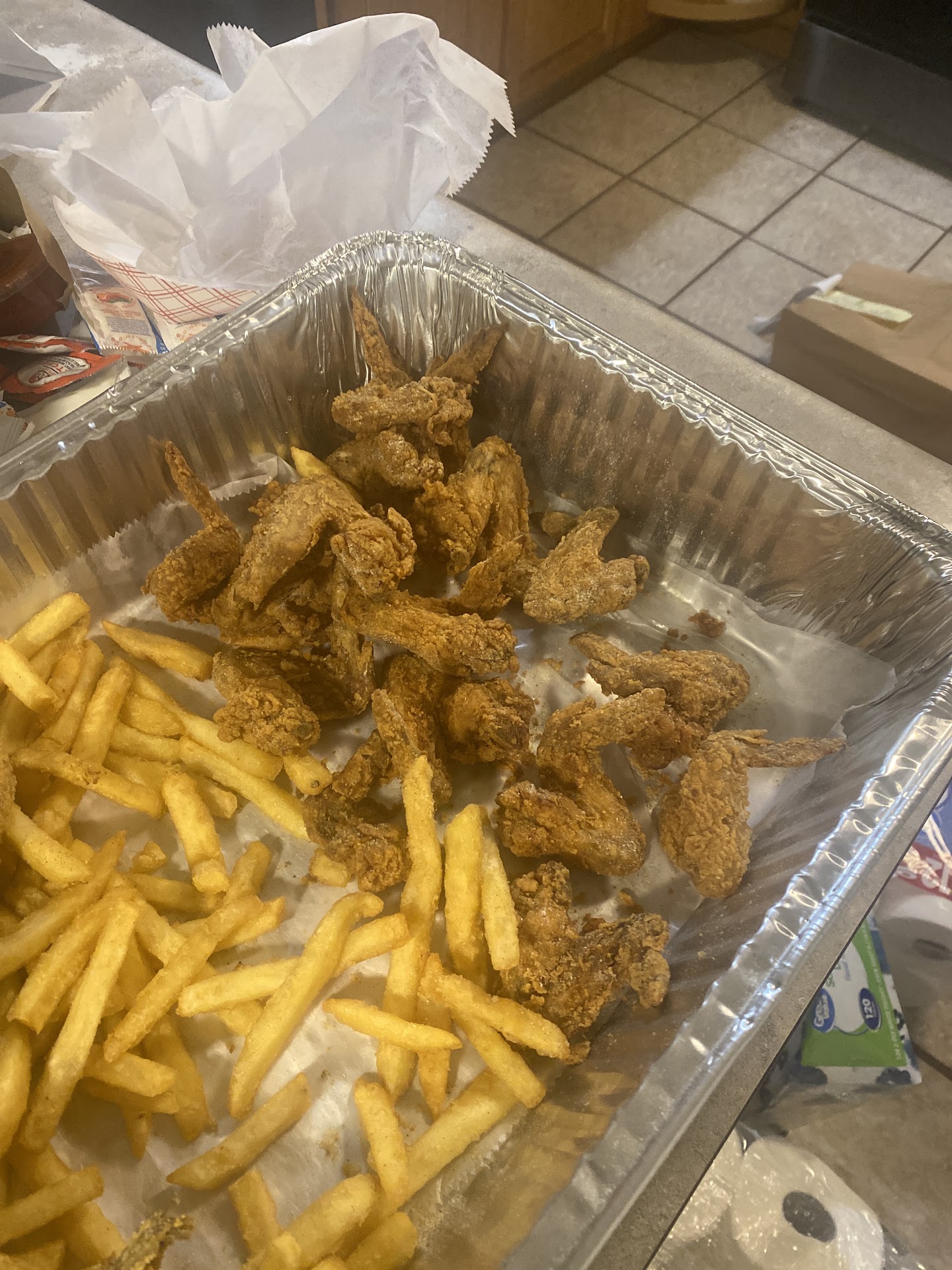 Ā Ā Ā Read moreChicken wings here are malnourished and extremely small. Must be the lowest quality. I ordered a large combo family meal. When I asked for catfish steaks as the fish, I was told that he could only give me 6 in steaks and the rest in perch. I thought that was strange but agreed because Iām not too picky. So the fish was decent and the chicken was terrible, literally no meat. The Italian beef sandwichās meat was not a good flavor and the bread was greasy.