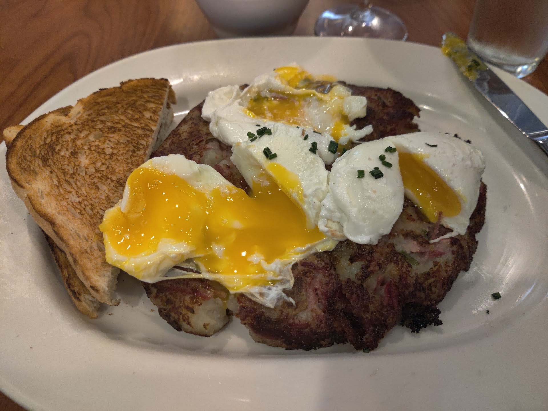 My eggs Benedict, however, was a disappointment. The eggs were overcooked, and when I raised the issue, the server didnât take the plate back but instead brought me two separate small bowlsâone with poached eggs and another with lukewarm hollandaise sauce. Additionally, the ham in the Benedict was extremely salty to the point of being inedible. At \$17, I essentially paid for some hash browns and a few salty bites of ham.