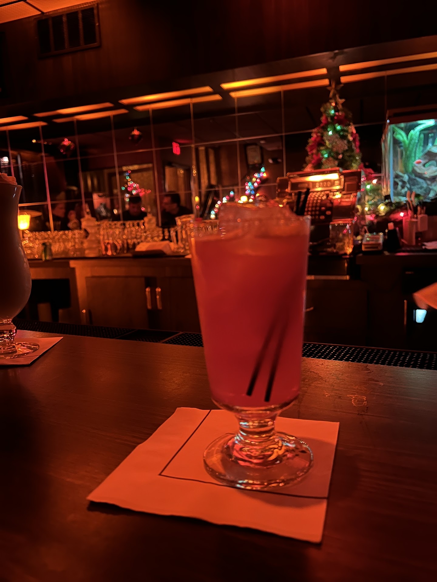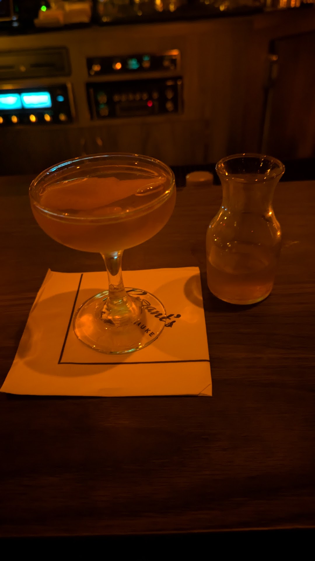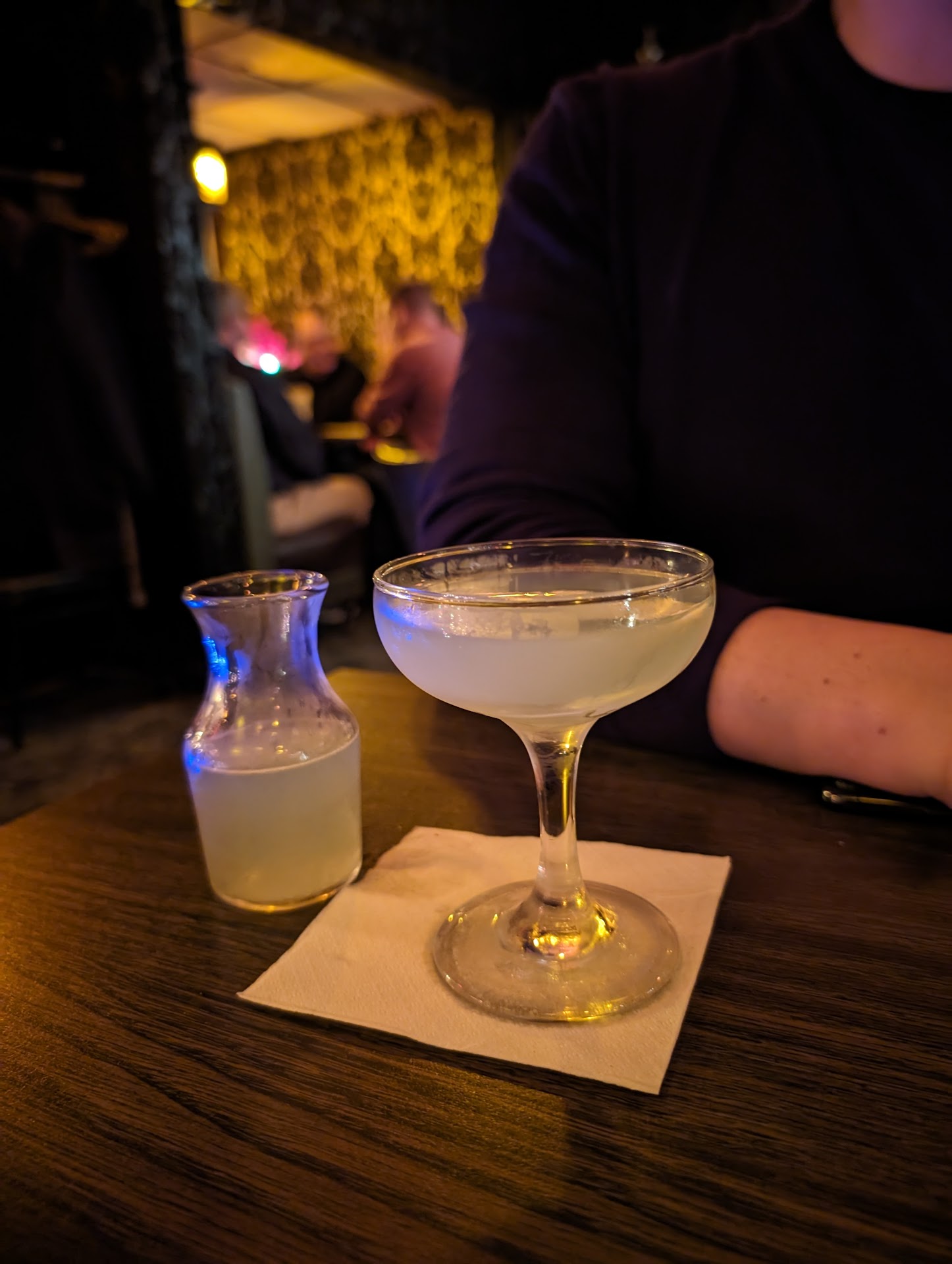 Sadly I must say we were disappointed, this classic institution. No one for cocktails had everything going for it from the music through the old stereo system and the mix to the dim lights but failed on presentation of two basic cocktails totally! I'll start out that we were first in as we arrived early on a quiet Sunday, followed by six or seven other customer shortly thereafter, when the bartender gave us the spiel on the history of the place that we already knew and then asked if we had any allergies or afflictions that part kind of threw us! If you're in a historic gmail and you're allergic to something, you probably shouldn't be there or you're probably dead! The next tell that I knew that this was going to go sideways. Was the bartender walking back and forth and the sticky sound of the shoes sticking to a dirty floor? Turned me off, Then the next tell was when the bartender walked over the sticky floor to the Rolodex, I knew these expensive cocktails. We're going to not be to expectations for a place. This historic! The cocktails were simple and basic one. A new age take on a martini and espresso martini. This seemed to be dosed with I believe amaretto, No actual espresso! But the three coffee beans on top perfectly placed gave it a resemblance of an espresso martini! Myaconic classic was simple a cosmopolitan! Very straightforward. Never blended as this one was in ice. Never he chill the glass but you don't blend it like a smoothie. I thought maybe I got a vodka gimlet instead because that was the only outstanding flavor present was lime juice that threw me for a loop! Totally disappointed the boys at the end of the bar acute couple enjoyed their flaming drink. I was waiting for him to dump it on the bar and the place catch on fire! As they videoed it for their social media presentation. I guess that's the catch here. Sadly we won't return. Very disappointed as there are so many outstanding places in Milwaukee to get that wow factor cocktail. I wasn't expecting that. I was just thinking of a great place with the great vibe this historic place had and the presentation & mixology...