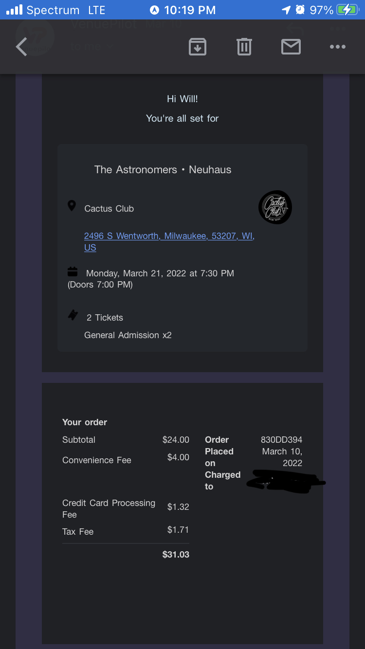 Read moreI went to a scheduled event at this bar, so the place was admittedly very busy. I bought 4 bombs for my group, and while the bartender was making them, I suddenly saw an old friend I hadn't seen in a very long time across the bar. I gave my card to my boyfriend and asked him to please finish the transaction for me so I could go and say hi. as I was talking to my friend, I hear the bartender angrily YELL and POINT "YOU!!!! didn't you buy drinks?!? you have to sign for them JESUS CHRIST!" very loud and rude in front of everyone. I said bye to my friend and finished the transaction. I wanted to give the bartender the benefit of the doubt, and assumed that my boyfriend had just been talking to my friends and the bartender didn't know he was going to be the one to run the card. However, after asking my bf about it, he said he even added on a beer to the tab and TOLD THE GUY that he was going to be paying in place of me. Look, even if there is indeed a policy that the real actual cardholder MUST be the one to sign.....there was no reason the bartender couldn't have said so nicely. I work a service job as well, and a busy stressful shift or annoying customers who don’t know our policies never gave me the right to scream and embarrass people lol. I used to like cactus club but now idk bc that was some...