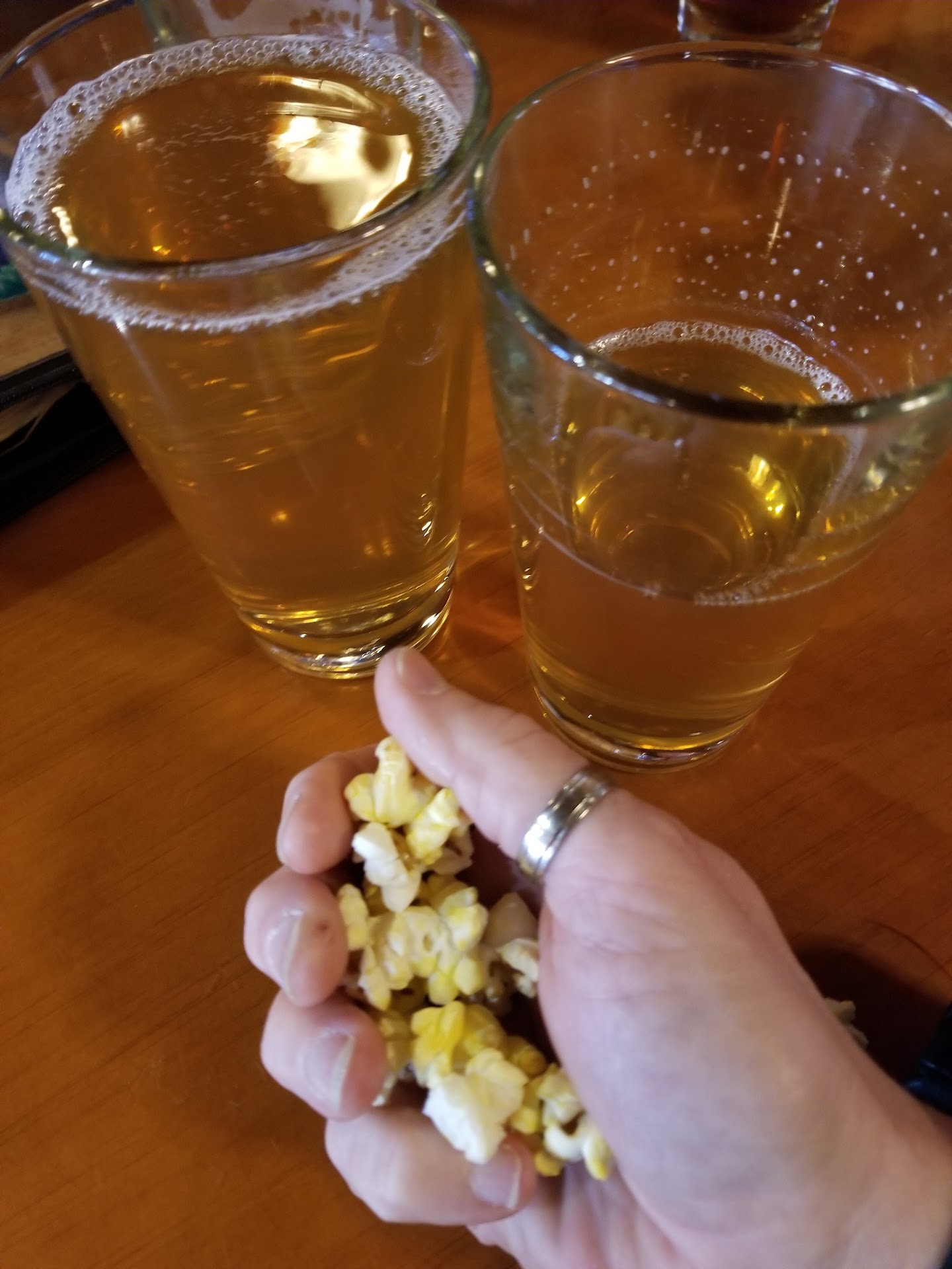 Read moreIt was busy and loud due to a packer game, but that's cool. Free popcorn, who doesn't like popcorn with their beer? The back patio is lovely but broken fans and light fixtures and non-functional neon makes it look run down and sad. Service was...fine. Liked the fireplace and floor to ceiling front windows. Bet it's cozy in the winter to have a pint and watch the snow come down. Pool table was really gross and needs cleaning. Please resurrect that back bar, what a cool hideout that would be. This seemed to be the most hopping bar in the Marquette area. We will be back and give it...