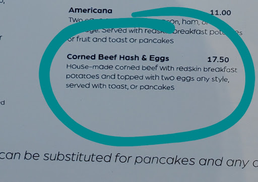 Read moreWe might've just gotten unlucky today, but I went with two of my friends and all of our orders had something wrong. Friend 1 ordered the South of the border Benedict and the poached eggs were WAY overcooked. It was like a hard boiled poached egg. Not the worst thing, but a little sad. Friend 2 ordered the Sante fe bowl and it took us a while to figure out what they were given. They were excited for the corn and chorizo, but received neither in their order. We figured out they were given the meat lovers bowl with jalapeño (figured this out too late to send it back). They also ordered it with fried eggs and got scrambled (not the end of the world, but again, a little sad). I ordered the corned beef and hash. I will post a photo of the menu we received and what I saw when we ordered. The menu did not mention cheese, onion, or peppers in the corned beef hash. I received all three of those in my order. Our server (who was LOVELY) explained its a different corned beef hash, which I totally get. I had to send mine back though because I can't eat peppers. But none of those key ingredients were listed on the menu. All 3 of us are just concerned that if someone with a severe allergy or food restriction orders something, they could be at risk of consuming something because it's not listed in the item description on the menu. Also, we saw the menu has a little key for gluten free items, but nothing is actually labeled as gluten free on the menu.