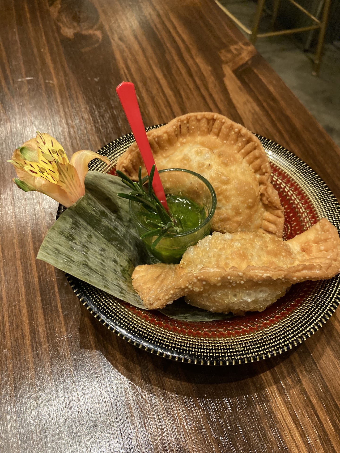 Based on the recommendation of our waitress, we selected three small-plates/appetizers and two small entrees. First out was the Choclo Nachos. The dip was OK - sweet from the corn with little discernable other flavors. The big disappointment was the stale hard-shell, right-from-the box taco shells they served as the āchipsā. Ugh! The second plate was 2 small beef Empanadas with chimichurri dipping sauce. The highlight was the chimichurri as the empanadas didn't have any standout flavor. The last plate was the Hongos A La Pepa (mushrooms). The menu stated 3 types of mushrooms, but we found it difficult to discern any difference. They were bland and not very interesting and were served with what could have been a store-bought bakery hoagie roll - NOT an artesian baguette.