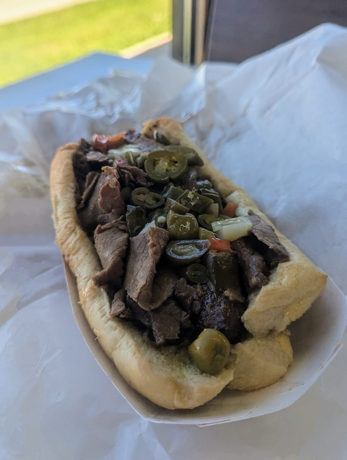 Read morePORTILLO'S WHO??? I don't live in the area, so this is my first time here. Was roaming around, trying to find something to eat, and I ran across this spot. They have a very nice variety on their menu. Such as Chicago, hot dogs, chicken sandwiches, gyros and more. I had an Italian beef because I always love those and heaven had one in awhile.and I was certainly not disappointed.! I don't care for Portillo's Italian beef at all. I don't go there.I find it they are overpriced and just average tasting. This sandwich was was hot and fresh, loaded with meat, and I just thoroughly enjoyed it. The deal I got was the sandwich, an order of fries and a can of soda, and I think it came to around .$12. Also a very impressive variety of sodas to choose from. The man behind the counter was very nice and friendly, and I definitely, will be back there next time.I am...