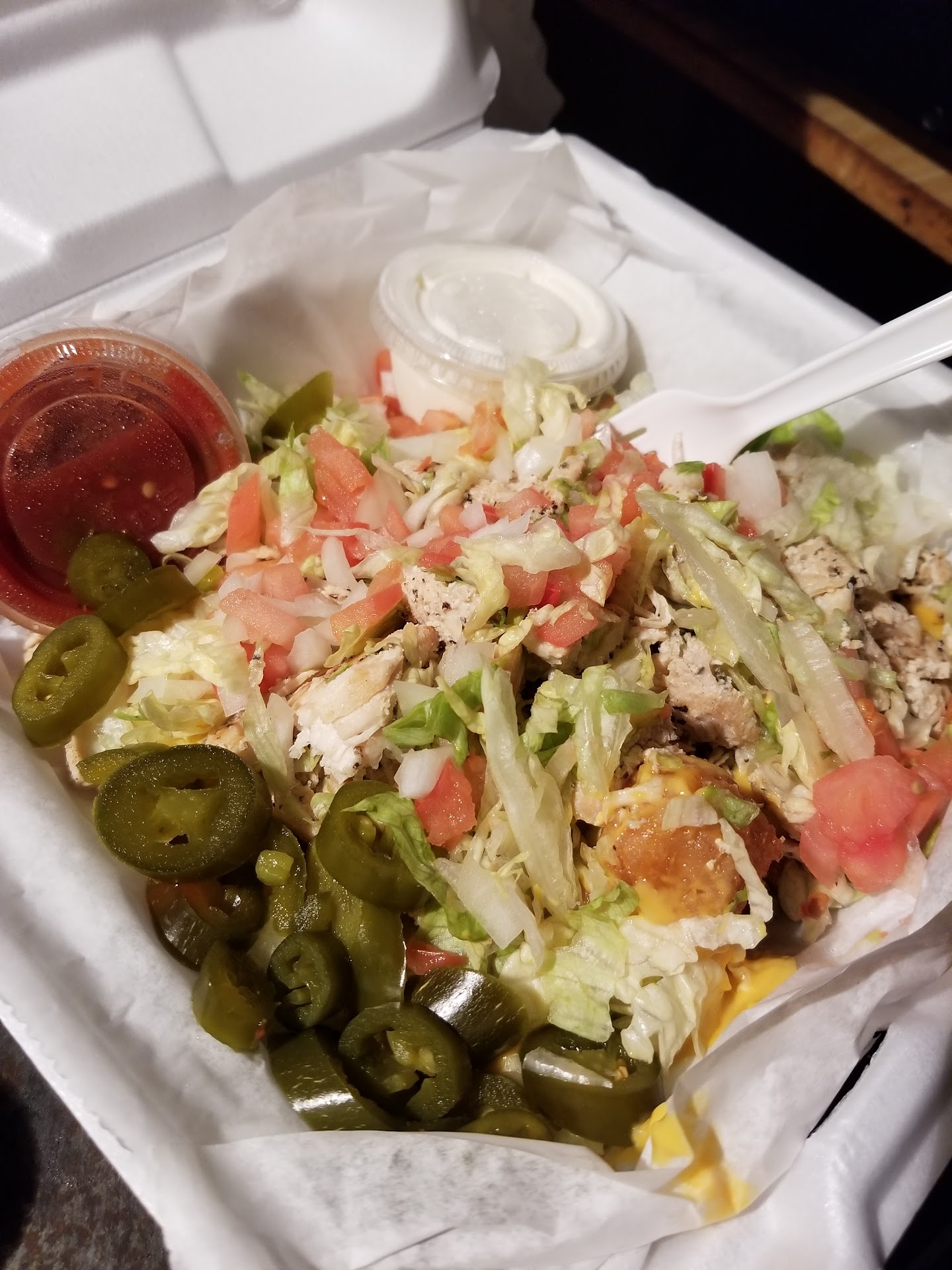 We ordered for pick up through the Slice app. The restaurant had to call me and let me know that the Chicken Alfredo I ordered was no longer available... so I exchanged it pretty seamlessly for loaded tots. My husband ordered a chicken parmesan sandwich. When we got home we were not pleased with the appearance of the food. The loaded tots were covered in a layer of old salad/lettuce then a layer of cheese with some chicken and tots buried at the bottom. It was not great. My husband says his sandwich was not worth the price we paid. The photo on the website showed a larger chicken parmesan on a larger bun. Slice was kind enough to offer us a credit. Not sure if I would order from here again. I think we tried this place when it first opened and didn't like it either so we will probably keep...