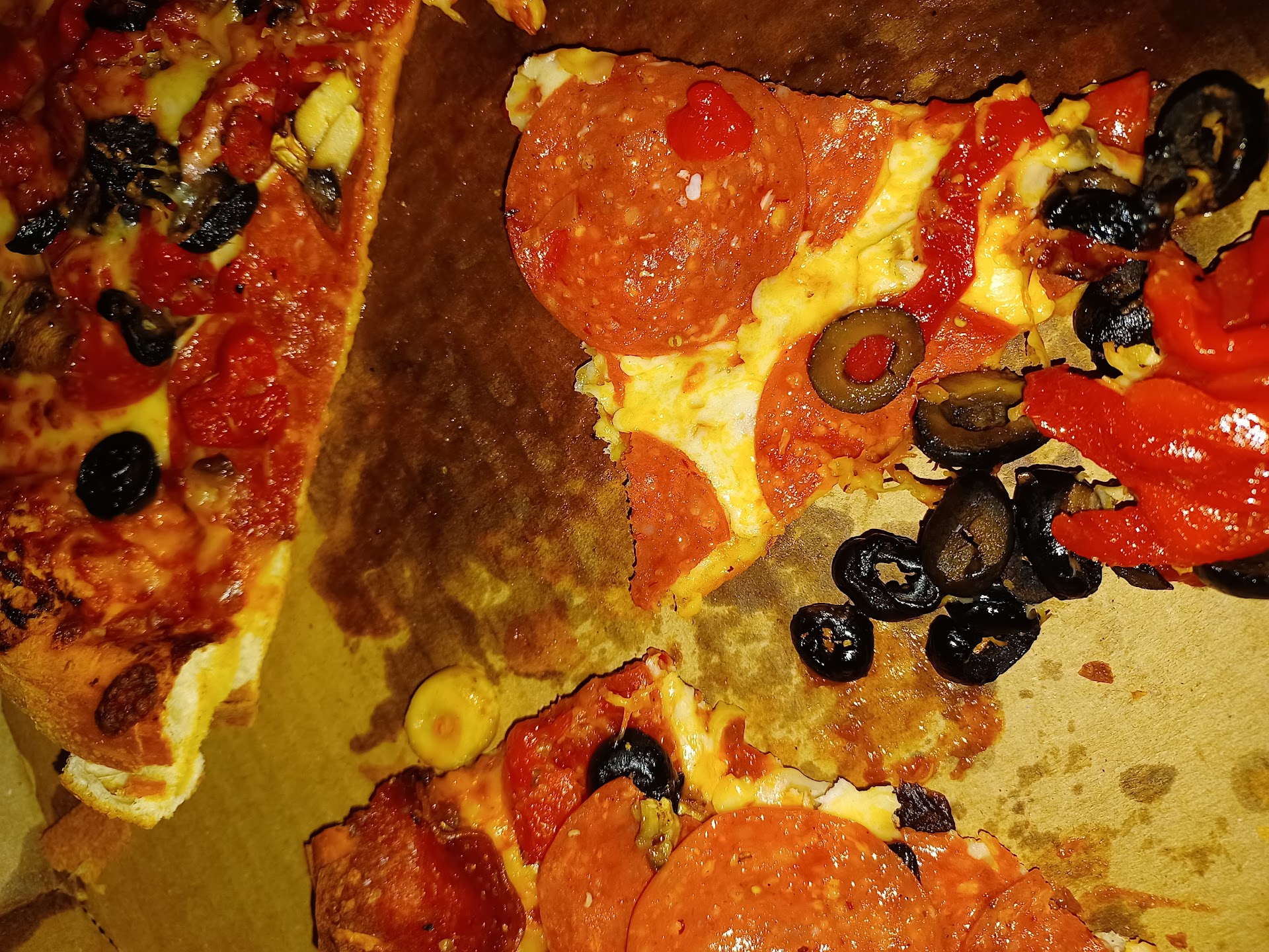 Read moreI order Domino's for dinner regularly, so I gave 4 stars because Overall they are usually a great choice for dinner. I usually have a big order and normally they don't make any order errors. I'm almost always satisfied with my order... this is important when you order frequently and you don't like to be upset about order errors when you're hungry. Sometimes things aren't really that great, it happens I'm sure everywhere, especially when you order as often as I do, the there's just statistically more chances of there being things that happen.. My last order the pizza I ordered was .. Ultimate Pepperoni, Add: whole pizza: mushrooms, Add: Left half: black olives, roasted red peppers. Cut: normal Bake: well done.