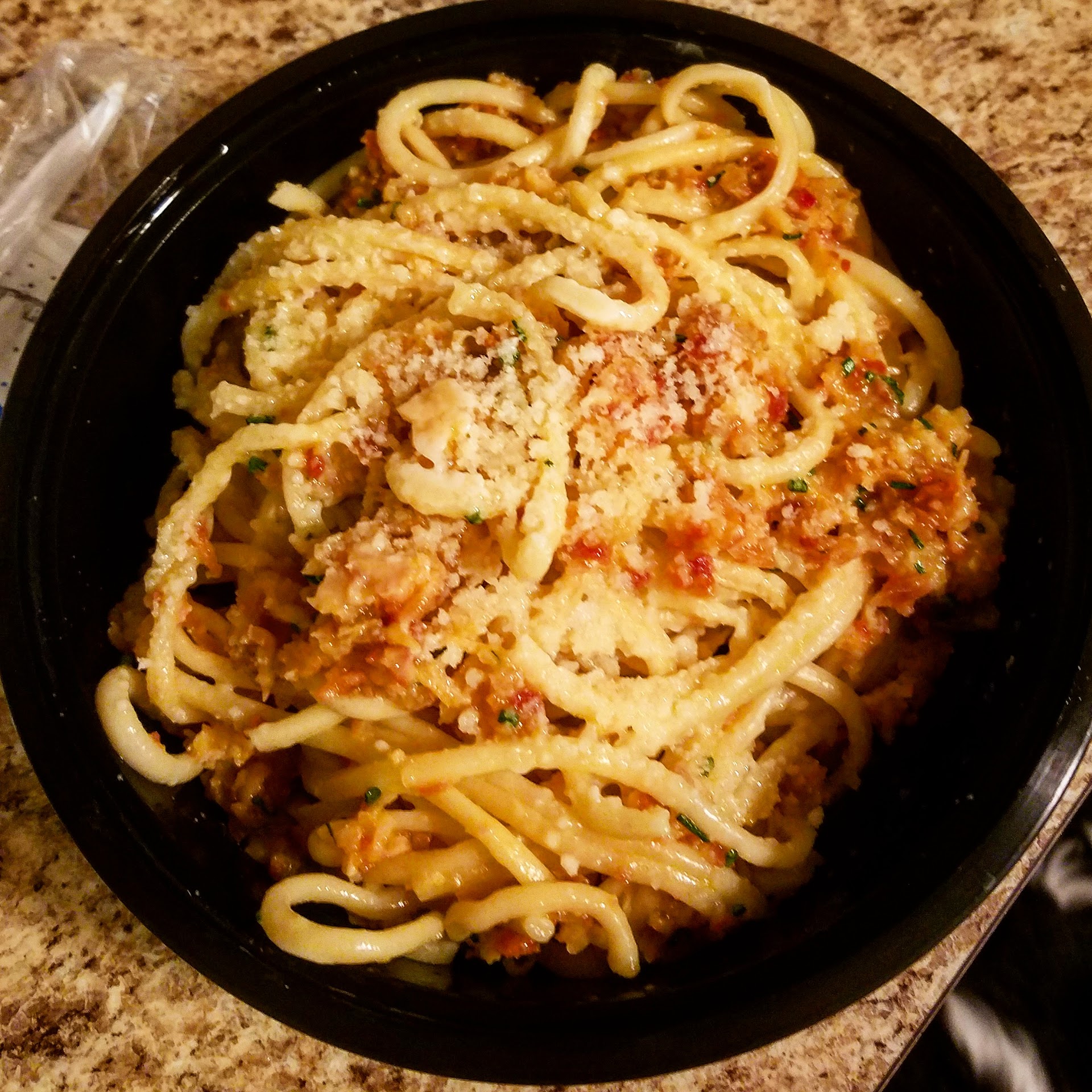 I will say, it was somewhat off-putting to watch my food being made…with only one glove on. The person working was just reaching into the basil and other ingredients, and throwing it in the bowl with the pasta, and wiping their bare hand off on their apron/pants. It definitely made me a little uncomfortable and concerned…I don’t thing wearing food safety gloves should be too much to ask, especially when the food preparation area is open and customers are watching you make things.