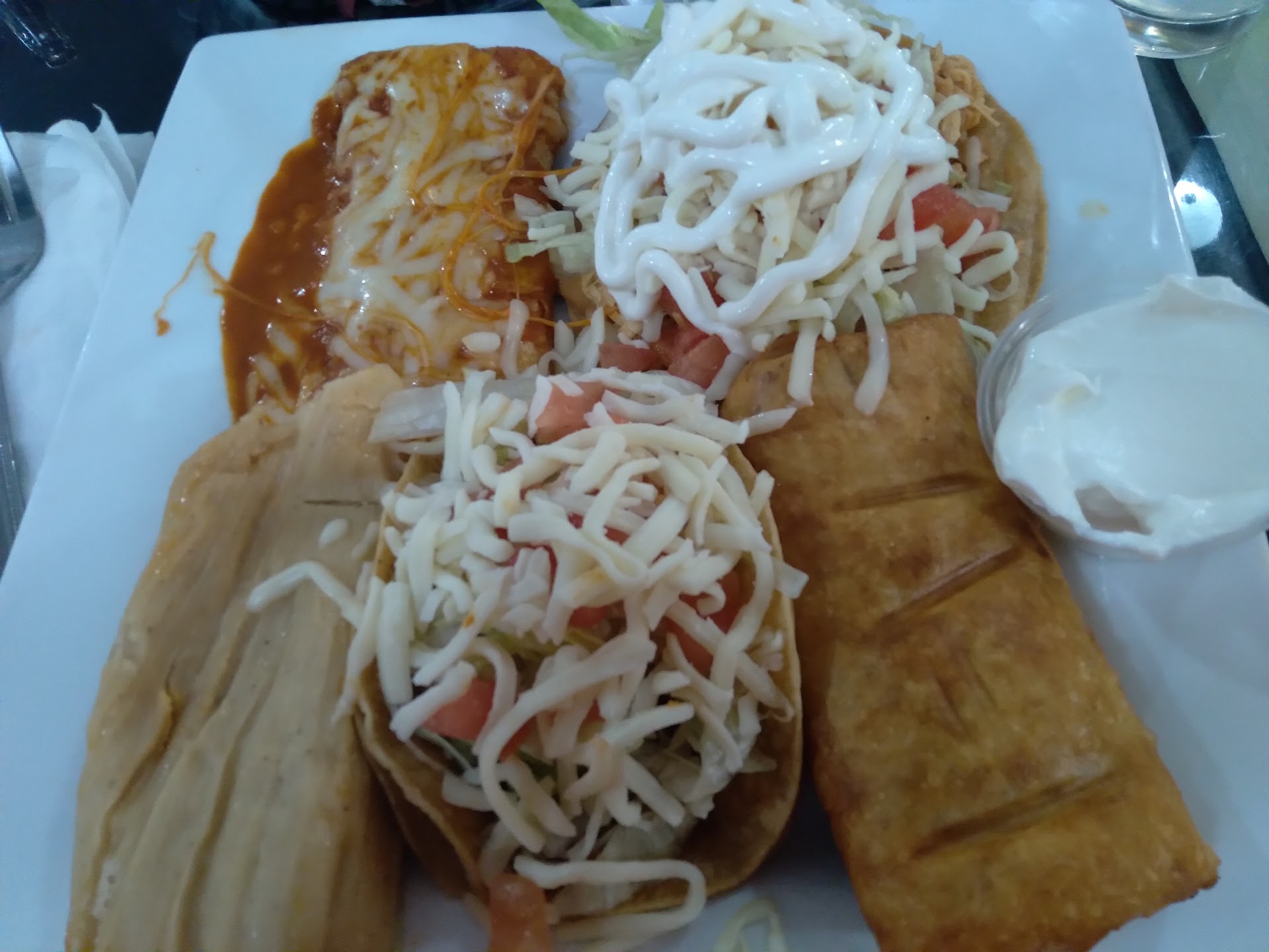 The menu has a lot of variety. I did my usual "build a combo from the al a carte section." My favorite was to eat at a Mexican restaurant. I can try all their meat choices but not fill up on rice and beans. Chips and salsa is anther story. I ordered the steak chimichanga, ground beef taco, cheese and onion enchilada, pork tamale, and chicken tostada. All of the meats were tender and full of flavor, and they do not skimp on fillings. But no. I of course did not finish it and took the leftovers home for another meal.
