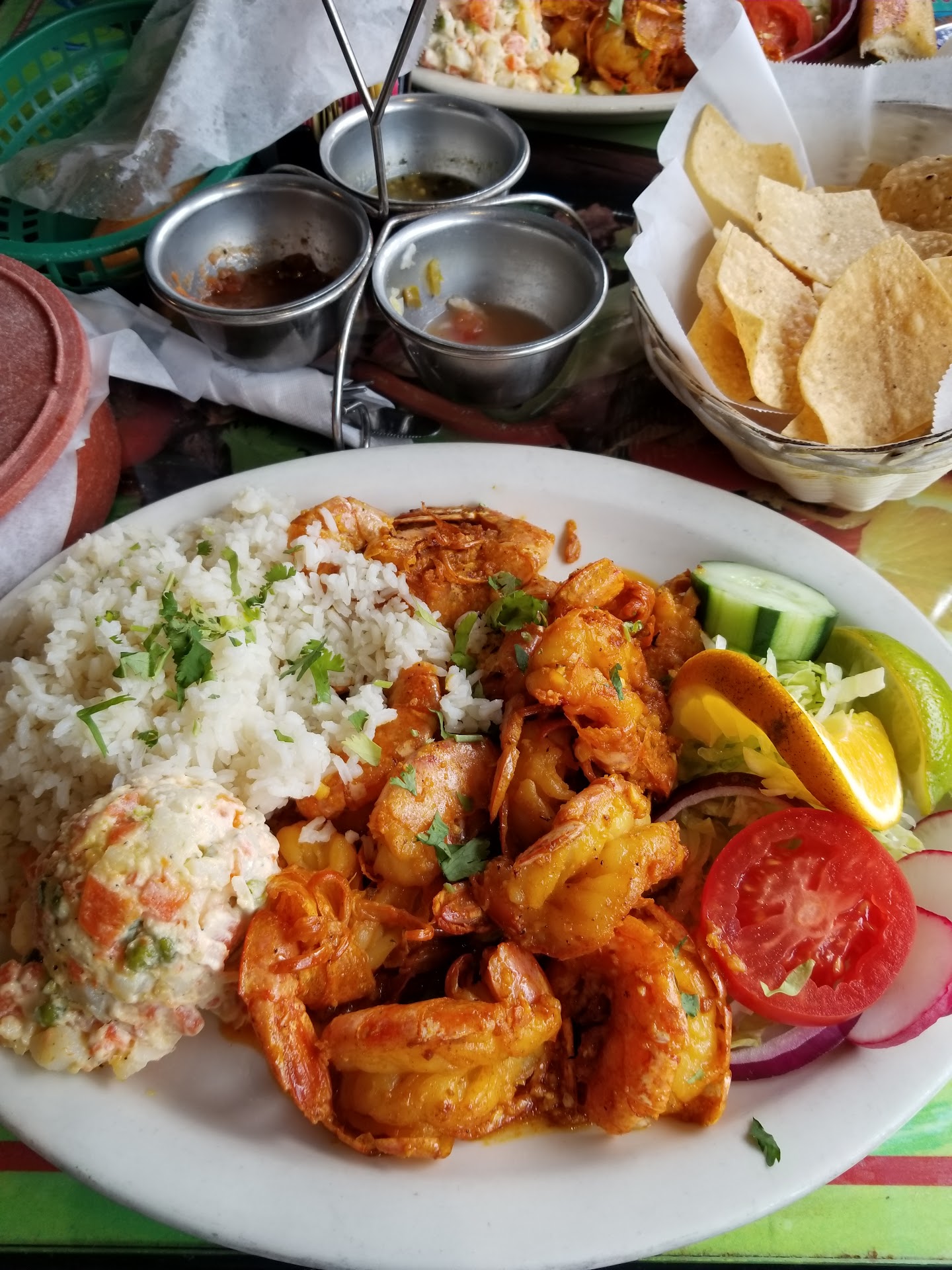 The place was very nice. They started with the normal chips and salsa but they also give you a small portion of Fish Ceviche and a fried seafood empanada which was really good (and free).