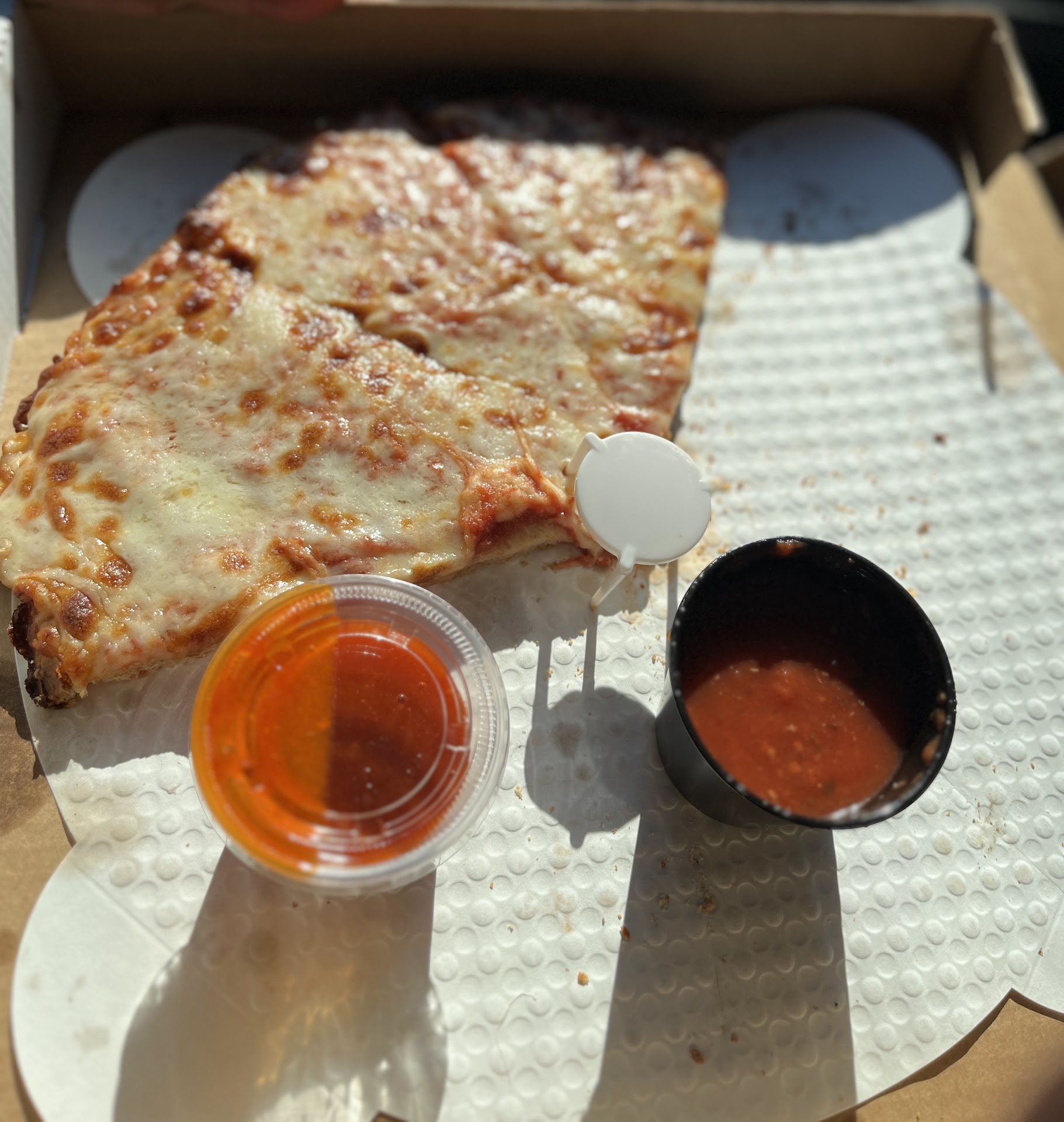 With âextra crispyâ bake time, I enjoyed the mozzarella and sauce + marinara and hot honey sauce on the side (which, I stopped back in to ask for after eating 3/4 of the pizza, and was gladly provided complimentarilly). - a sincere thank you for the abundant portions and for being so kind and generous! - I was not expecting this đââïž