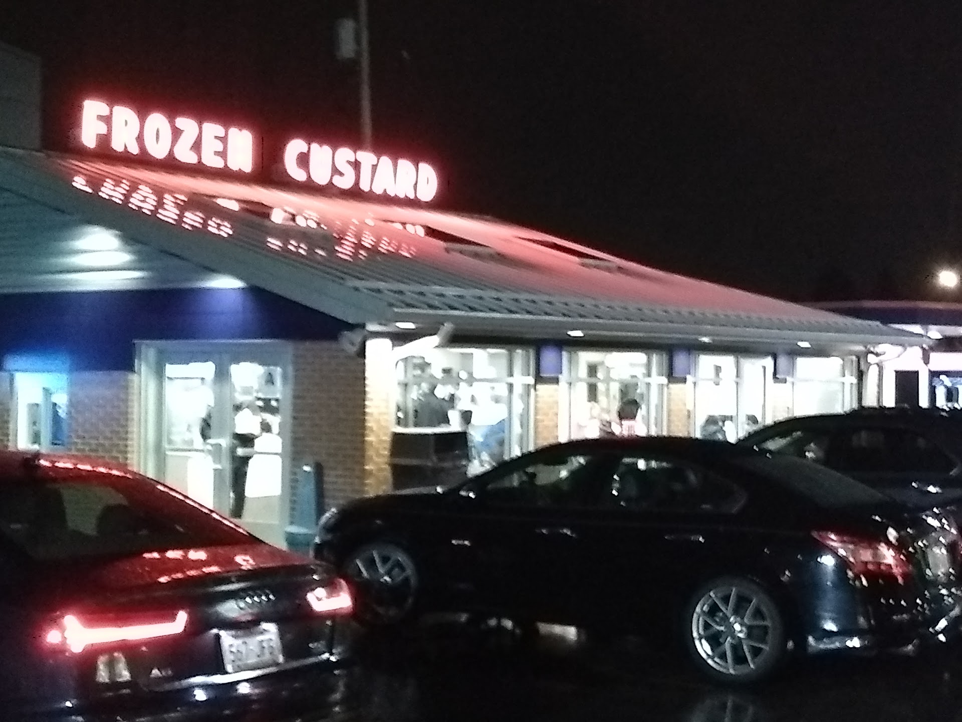 Perhaps the only sad thing about no longer eating animal products is that I'll never again eat at Gilles. Because I grew up a few blocks from Gilles, a huge part of my childhood was spent eating Gilles frozen custard, malts, and burgers. Those are very fond memories. Local bias may play into my views but I would take Gilles over any other frozen custard stand in the state. The frozen custard is amazing. If you've only ever had ice cream you'll be amazed (or should be) by how much better frozen custard is. Besides the amazing food, Gilles is a special place because it is one of the few remaining establishments that provides an experience. If you go there on a warm summer night you'll be there with people who just finished a baseball game or had been at the pool all day. There is a simple indoor area for ordering and there is a limited amount of seating. Most often you'll wait outside for your number to be called and then you'll return outside to eat your amazing food. There are a few tables outside but mostly people just stand or sit wherever there is room in the parking lot area. It is very informal. Other frozen custard stands are probably the only places anywhere that still provide this "old school" dining experience. It is an experience I wish I could duplicate around...