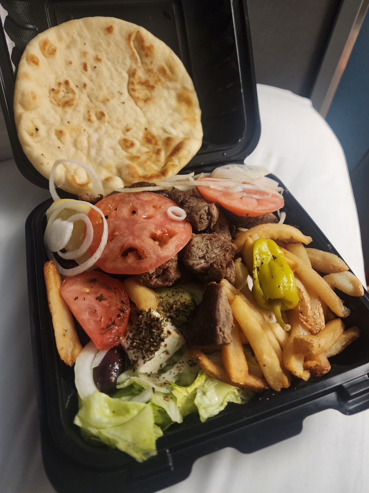 What an awful experience this evening let me start by saying that I am a very frequent customer to this establishment. Last time I was here I ordered a gyro plate Supreme which came out and it was cold I figured I wasn't going to return it however I did go inside and I did tell the lady that was in there that the meat was cold. I said to to myself this doesn't happen often so I let it go. I decided to give it another chance tonight we pull up in the drive-thru no one was there it was a very slow night compared to other times. We tried to place our order through the drive-thru. I ordered a gyro Sandwich with fries and four chicken tenders. My friend ordered a mini chicken wrap instead he got a chicken kabob sandwich and he was charged for it. He was also charged for side of shrimp that he never ordered. He also ordered a dessert baklava and he never received it. He ordered also a bottle of water a small Pepsi and a medium Pepsi. When we went to the window we told the guy that the order was wrong so he reimbursed the charge for the side shrimp in cash and also about $4 and some change for the chicken kebab mistake. We waited there for a while so they can fix their mistake I received my Pepsi my friend had to ask for his Pepsi that he was charged for because the guy thought he gave it to us which he never did until we asked for it. The guy hands us paper bags normally we get a plastic bag with all the food that we order needless to say the water was so warm it felt like it was sitting outside all day.... normally I would not say anything however all of the liquid from the condiments went through the paper bag into my car and now I have to clean my car because we did not get a plastic bag like we normally do. This is the second time around they are messing up this bad and there won't be a third one I am not coming back you just lost a...