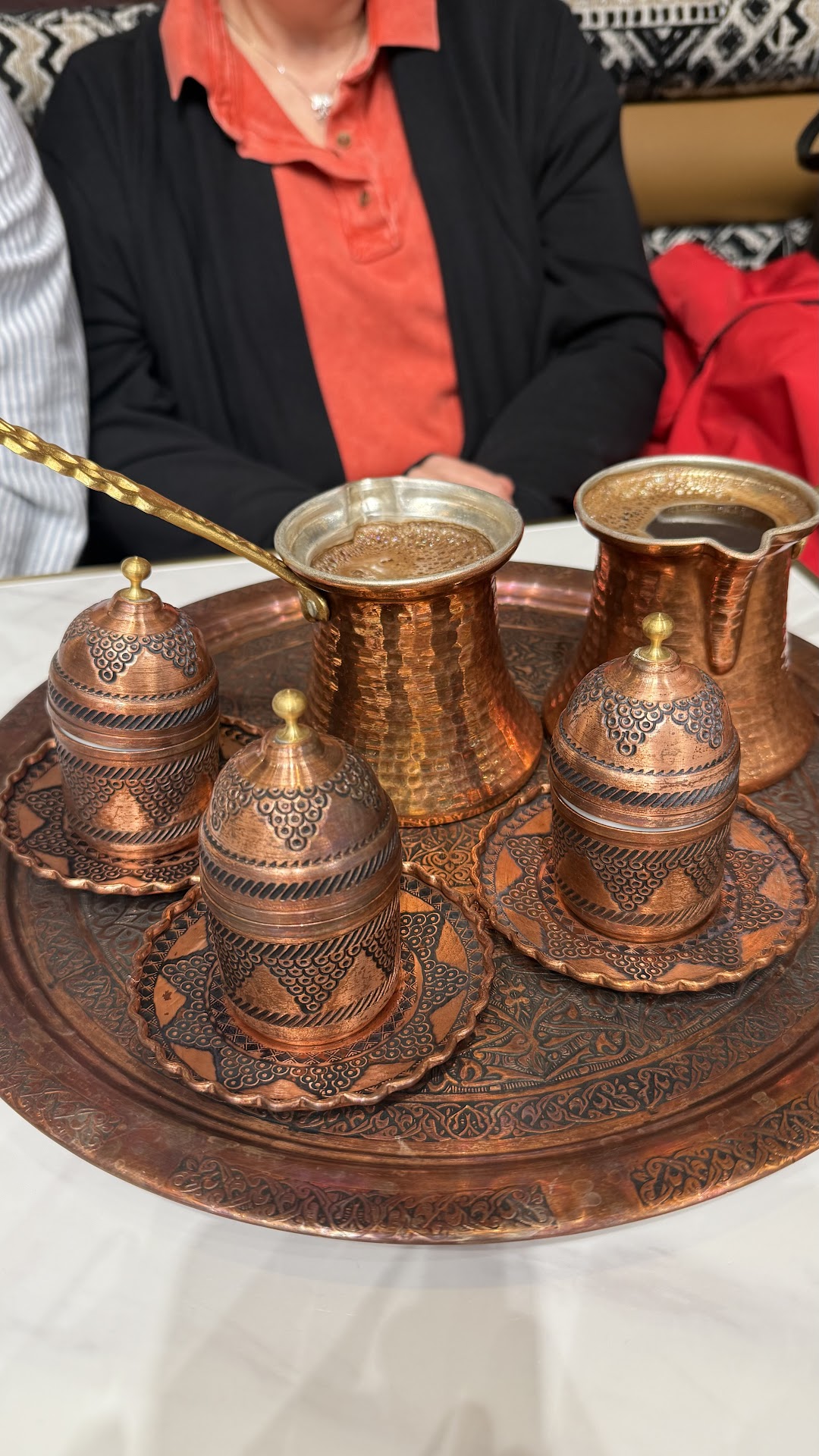 We ordered the Turkish coffee - worth ordering even just to see the stunning presentation! It was delicious - no bitterness, perfect hint of cardamom. The taste was silky and that hint of sweetness from the cardamom was amazing.