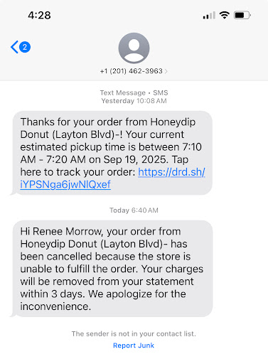 Read morePreorders beware... On 9/18/25 I placed an order for two boxes of 36 donuts on Honeydip's website. I ordered in advance with a plan to pick up my order between 7:10 and 7:20 a.m. on 9/19/25. I received an email and text confirmation for my prepaid order.