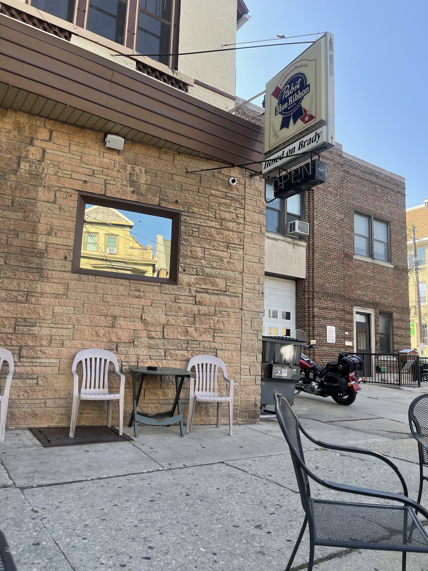 This bar reminds me of home, and the experience here is very unique. That is, the bar accommodates for the fire house next door. It's a community - where firefighters chill outside and casually converse with the bar crowds. Music plays loud enough on the patio that the entire street corner can be entertained, and there is always an open invitation to be a part of it all! One of the best experiences at this bar is when the fire truck departs for another alarm, the entire community is there to support and cheer the firefighters aboard. It's quite the event! Hosed On Brady is a blue collar joint with a massive stake in the community. That is, the bar is always a part of any community event or festivals, the bar offers meat raffles, and the bar supports the community. The staff is great and has one of the best bartenders [Ruby] on Brady Street! I definitely got...