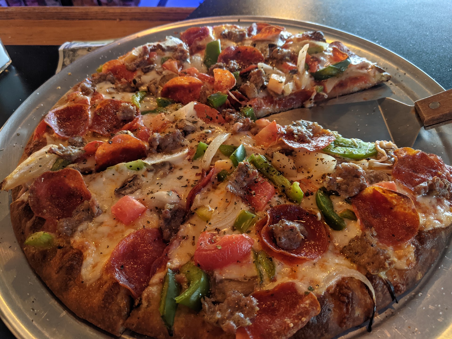 I give huge props to the bartender, she just took it in stride and started doing her best. Serving tables and the bar all by herself letting people know she's behind and alone but she will be with people as quick as she could. She deserves a huge thanks from her manager or owner.