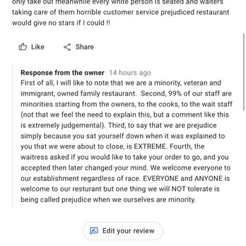 Read moreSo me and my business partners walked in ask for a to go order because we didn’t know for sure if we’re gonna stay so we just ask for to go they ordered two alcohol drinks and our food came so we sat down and started to take a couple bites our food which we didn’t know at the time was the manager walks over and tells us that you can’t eat here but get those they have alcoholic drinks so they had to finish their drink so we just took a couple bites of our food but we got yelled at so my business partners had to chug their drinks because we felt out of place because we started getting yelled at by this manager to leave And then not once but not twice but three times they got my food wrong didn’t correct my food kicked us out of the restaurant when I called to tell her that my food is wrong she started yelling at me so I got hostile with her and then I asked for my money back she said I was never allowed there we were Black people so I didn’t treat anyone else differently like that that was in there I give people the energy they give me but they was very rude Mexican food is my favorite and I’ve never experienced nothing like this dnt recommend going too...