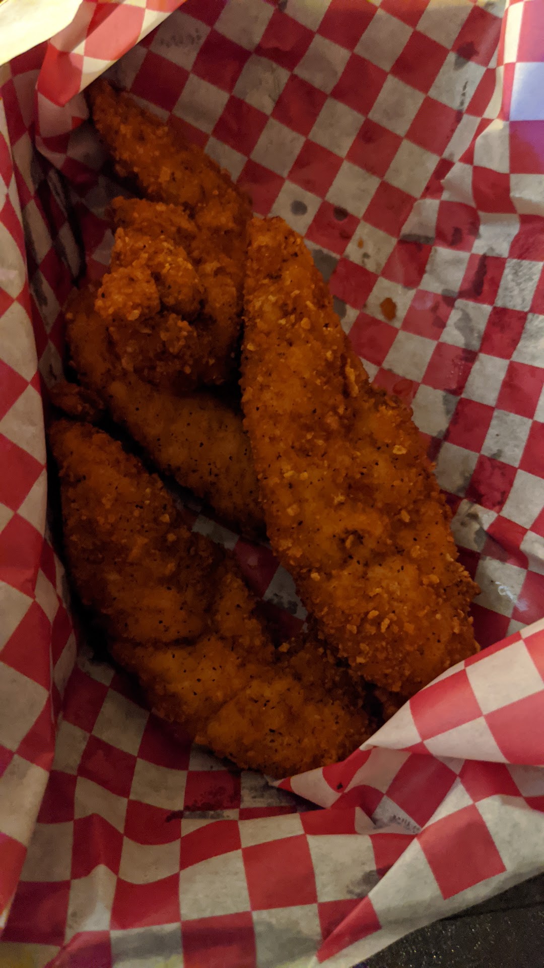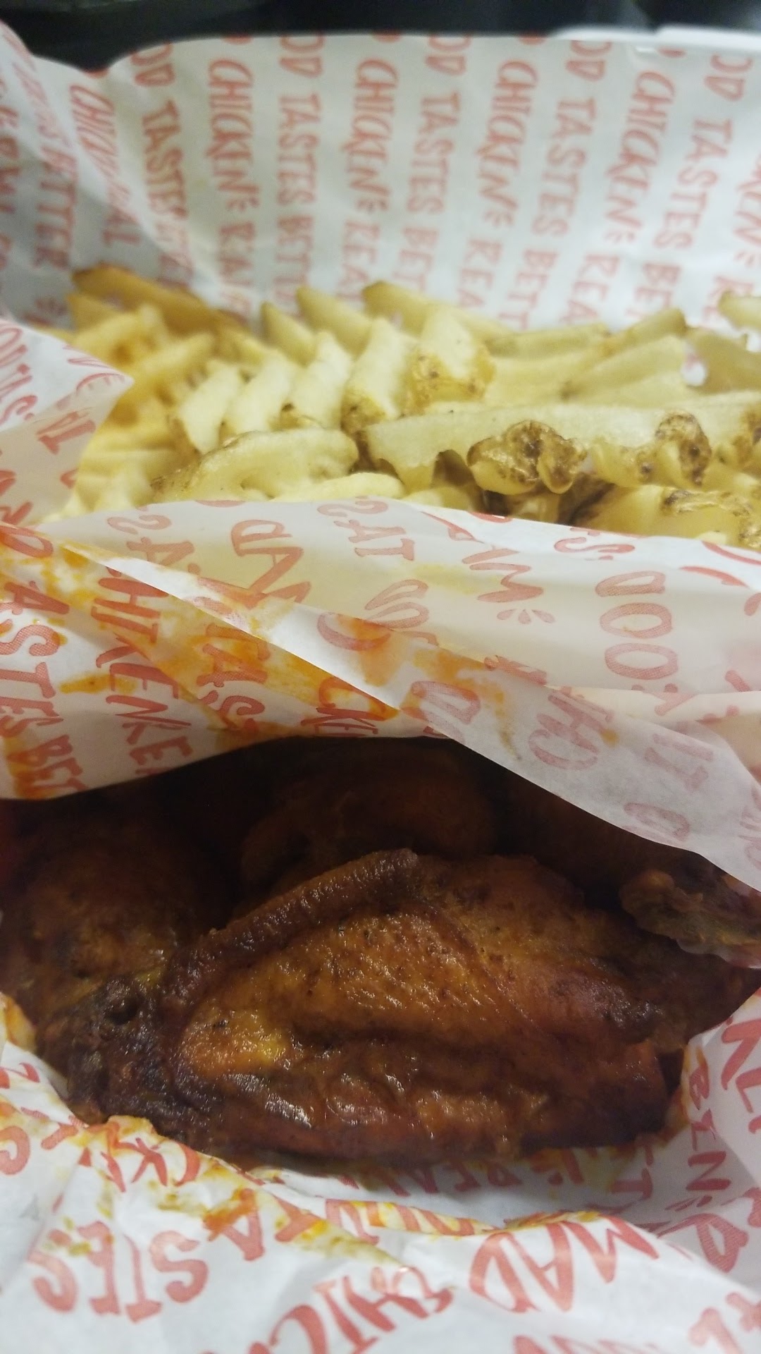 The fries are good, but are made better by the the mad fire sauce. The tenders are bomb too (they use tenders in the sandwiches and bowls)