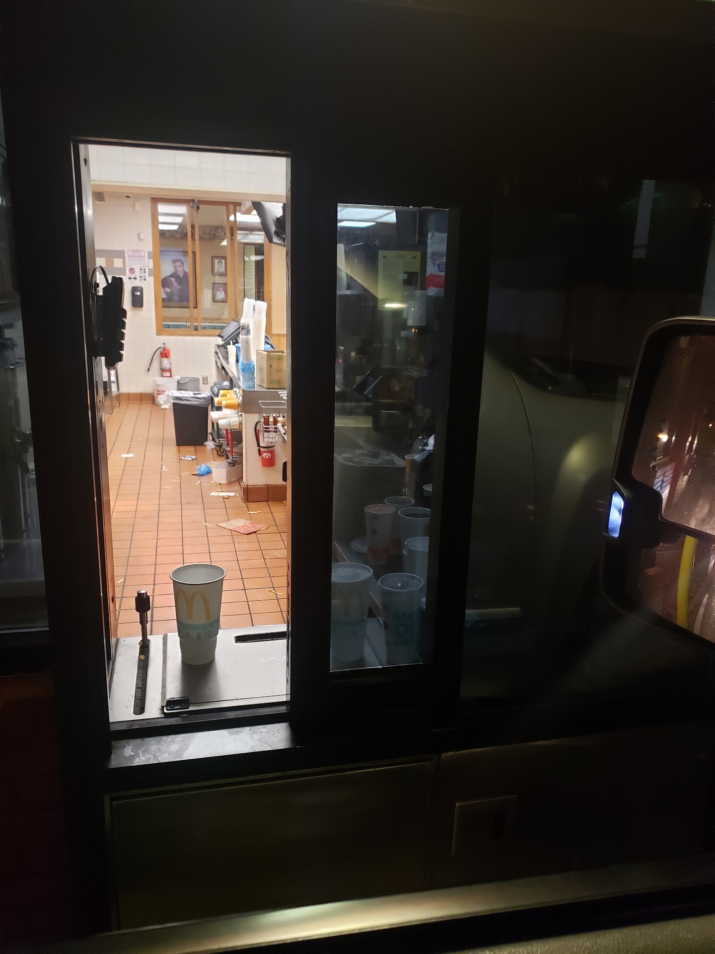 Read morePut in an order on the app at approximately 9:50 PM for pick up through the McDoanld's app. Once I drove to the location there were 4 other cars sitting in the drive thru speakers. There was no movement for 15 minutes, and two cars drove off angry. When I pulled up to the window I saw four terribly rude workers who were sitting there pointing at me and asking what I assumed to be who would talk to me. One girl comes to the window and before I can say anything goes, word for word, "Uhh yeah, we ain't cooking right now. We don't know how do the cooking and we shift changing, so we waiting on a manger to come in and cook the food." and before I can even ask any questions this belligerent worker closes the window and goes back to talking to her friends. So I figured I'd wait 30 minutes and get my food as the app had already taken my money. This instantly then is met by 3 of the workers walking out with bags full of food, drinks, and leaving work. Watching nobody enter the driveway and the lights stay on, and about 7 more cars try to order through the driveway and driving off angry, I decided to leave. I will be contacting anyone that I can, via email and phone call, and be working to both get my refund and have these TERRIBLE workers punished. If you aren't going to work, don't apply for a job. I've never been met by such rude, and useless employees in my life.