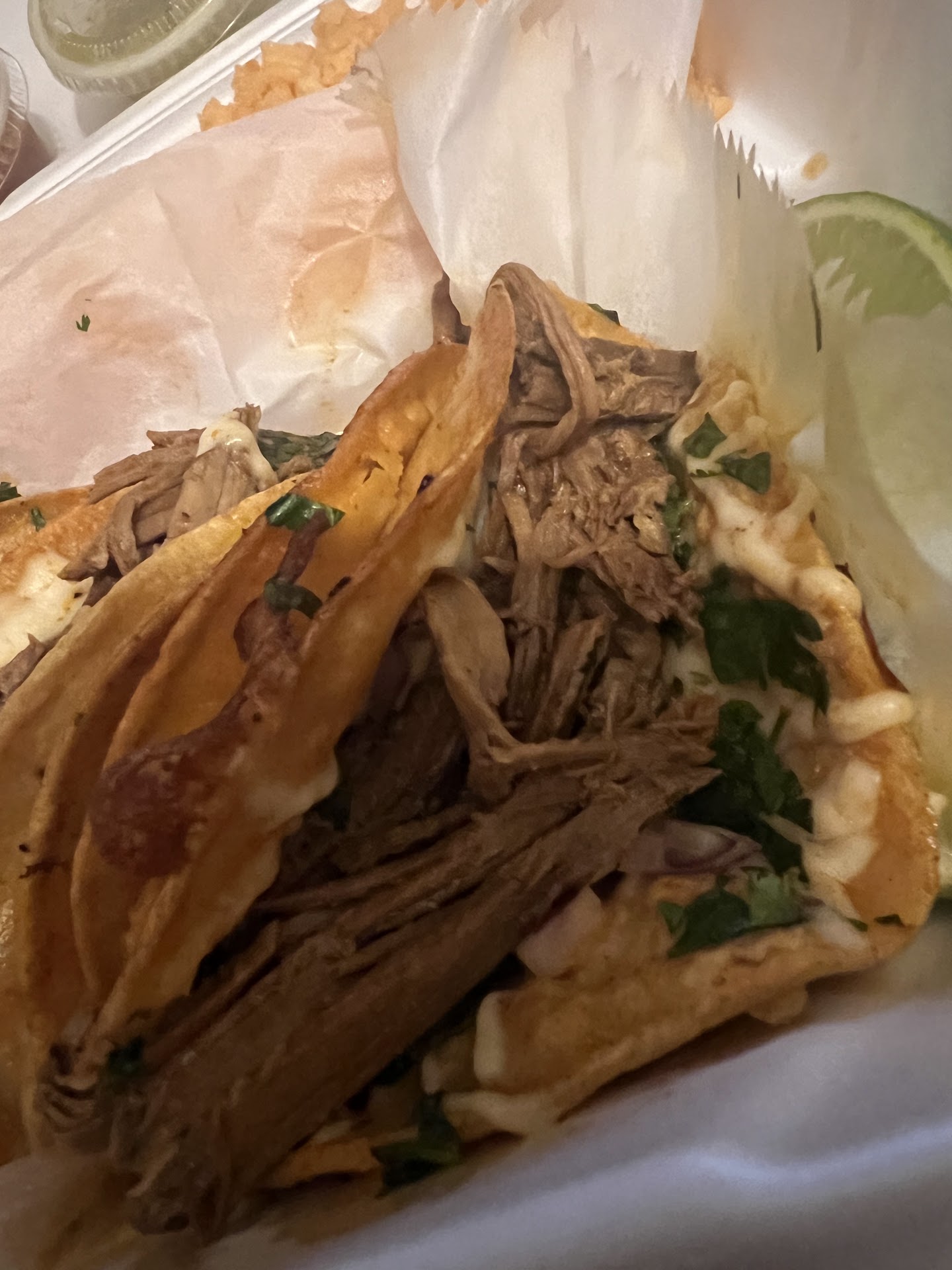 Driving by Mi Casa every day had piqued my curiosity, and I finally decided to take the plunge one late night. Despite my initial apprehension about the location, I knew it was time to give it a shot. It was disappointing that the steak/asada tacos were sold out, but the prospect of Birria tacos intrigued me. Birria is a tricky dish to master, so I was a bit anxious about the quality.