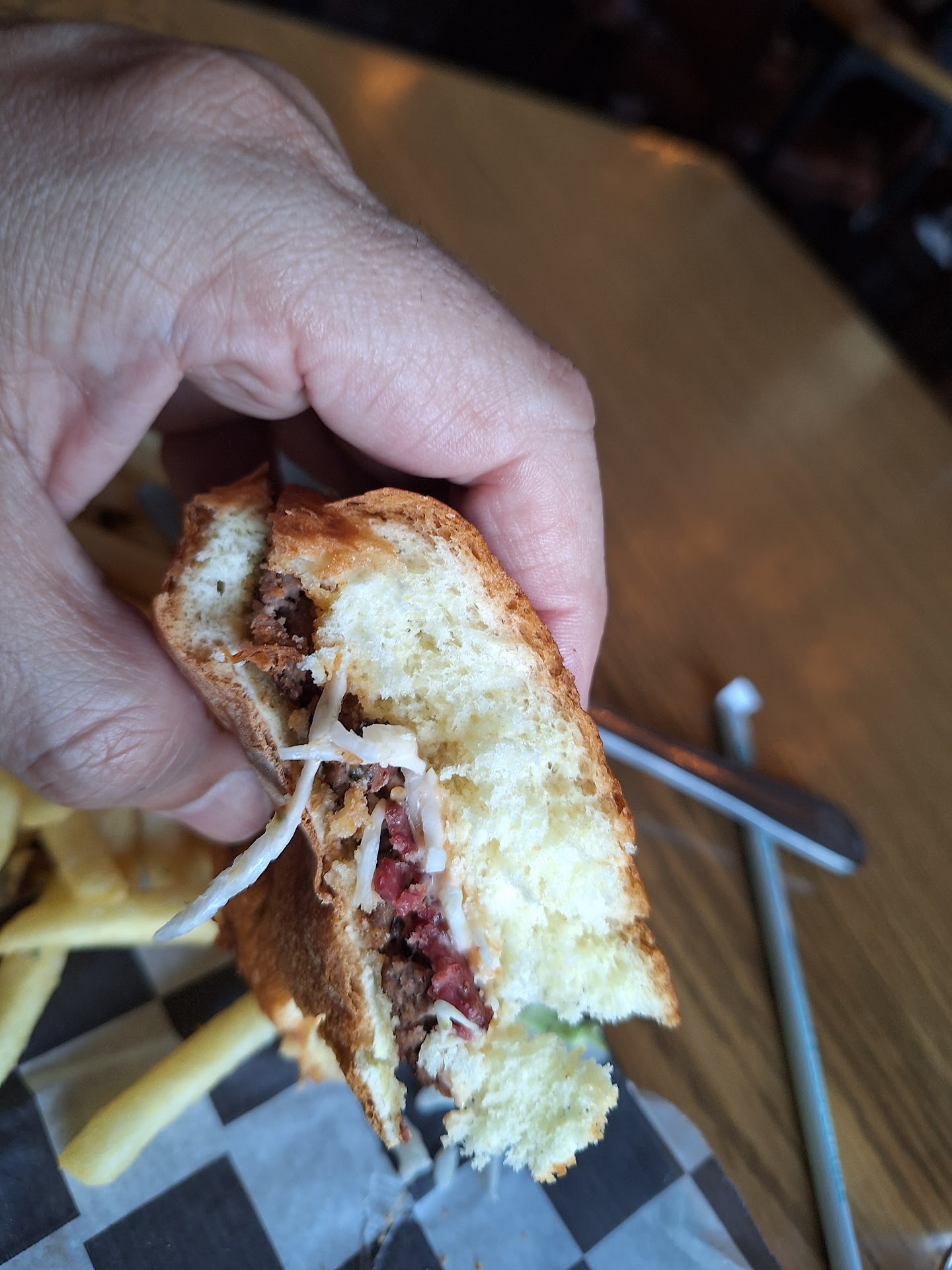 Read moreFirst time visiting this establishment and I was very disappointed with the service we received. Sadly, our server was not attentive, not because they were busy because we witnessed him taking good care of the other guest seated in his section and for some reason he chose not to be as kind to our table. We actually had to stop him as he walked past us to ask for things we needed because he purposely ignored eye contact and other attempts to get his attention. What's worse he never stopped to ask if things were ok or if there was anything we needed. As for the food, the appetizers were a bit too salty. So much so we couldn't eat it and had to request a second order and this time the chef chose to leave the rub off and put it in a container on the side! If you cook then you know the rub goes on the meat prior to cooking it not after! The buns for our burgers were hard & crunchy however, quite tasty. We did leave a note for our server explaining why his tip was less than the minimum suggested amount. This establishment gets 1 star because the burgers had a good flavor and were edible; in the future I might give this place another try just for...