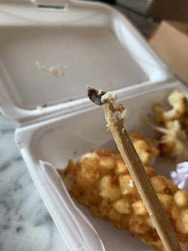 DISAPPOINTED to say the least but that wasn’t even the worst of it. We waited for quite a while for two corn dogs and we were the only people in there. When they came, they looked promising. From bite one it was clear that the dough inside wasn’t cooked all the way through and still raw, which was weird considering how long it took to get our food. Not to mention the second and LAST bite I could even stomach to take had a weird hard piece that I couldn’t even describe, almost like a scab? I have no idea. Just sitting inside the corn dog. I left my food right then and there. Sick to my stomach.