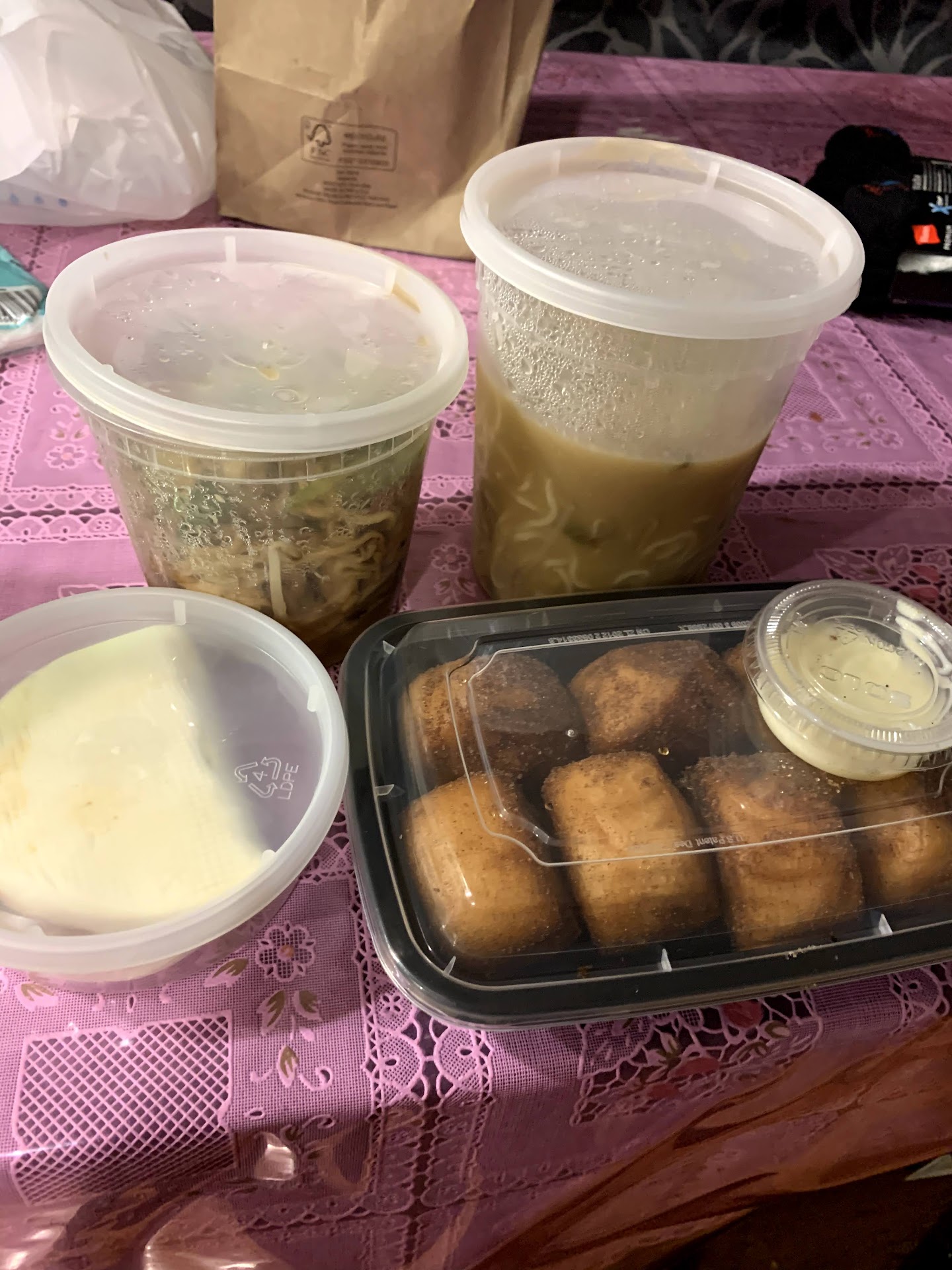 Tonkostu $14 - more of Japanese style ramen with the clear/gray broth. The pork belly was cooked to perfection which just melts in your mouth but wasn't a fan of the broth. It had a strong taste of seaweed in the broth (there was a piece of seaweed on the bottom of the bowl) that we didn't see until later. Overall 2/5 Taiwanese Guo Bao (pork belly) $10 - the white bun is so soft and has a nice sweetness to it but not overly sweet. The star of the show was the pork belly with the sauce was DELICIOUS, tender, and soft highly recommend to start with this appetizer. Overall 5/5 Xiao Long Bao $13 - they are definitely hot and please be careful when you bite into it, the hot broth does squirt out (hence the warning from our server who recommended ways to eat it). The broth wasn't as strong as I had hoped for it to be it was more of a clear broth with a hint of the meat (tastes like meat boiled in water with salt). The bun itself was soft and chewy to my liking but the meat that was stuffed was plain and shaped like a small circle of the dumpling. Overall 3/5 Yakisoba (chicken) $14 - was recommended for the kids and myself. This stole the show for me with its sunny side egg, flavor, and veggies. My girls actually ate the noodles which was very shocking to us as they're picky eaters on flavor (there's no spice in this dish). Overall 5/5 Carmalized banana lumpia with rice $7 - Not sure if they made their own ice cream but the ice cream drizzled with caramel was the best! The banana lumpia were made with egg roll/spring roll wrappers stuffed with bananas and it was delicious with it being light, crispy, and flaky. I would compare this dessert to crepe texture. Overall 4/5 Fried Mantou with condensed milk $7 - Soft Chinese donuts made fresh! The cinnamon and white sugar was a nice change from the usual white sugar donuts at china buffets. We didn't dunk them in the condensed milk as we knew we weren't a fan of it (we like to do bread with condensed milk instead). Overall 4/5
