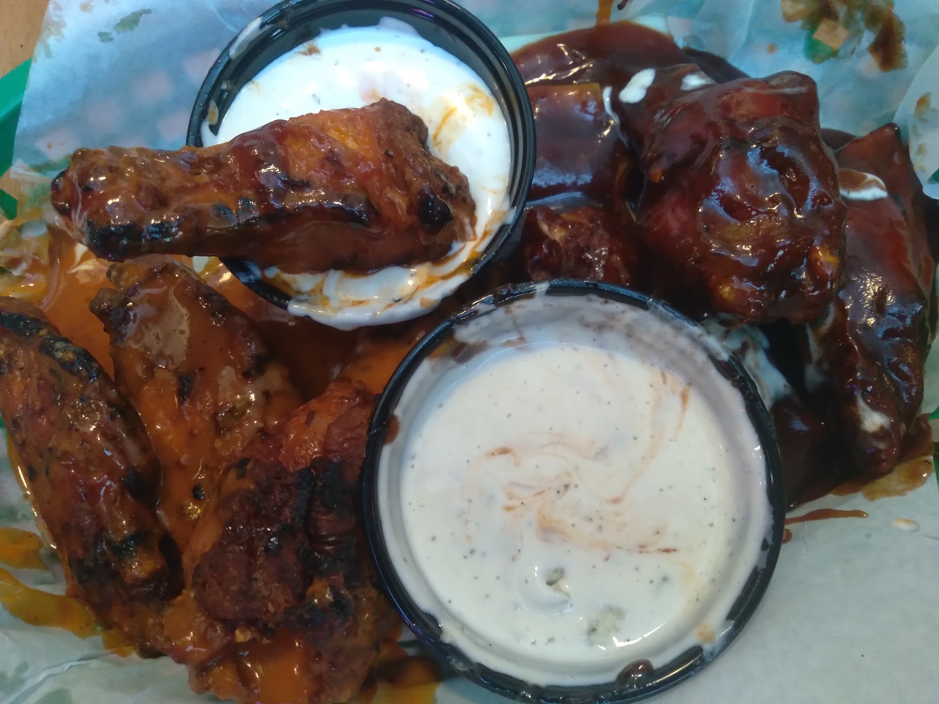 I will warn you, they are heavily sauced, which is by NO means a bad thing, but it makes them a messy adventure. I brought vinyl gloves - I keep them in my kitchen for cooking so I grab some on my way to dinners where I'll be eating finger foods. It's just easier clean-up. I also have no shame in using napkin bibs...only one who didn't have sauce on my shirt at the end of the evening!