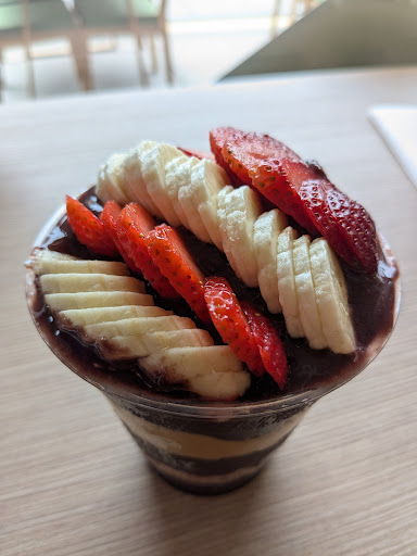 My partner and I stayed the night in the city, and we picked up two acai bowls for breakfast. It was delicious! Good portions. At first, it was kind of difficult to eat, but the design of the cup allowed me to put the fruits aside and I was able to eat it more efficiently. I really liked the taste of their acai, their bananas were nicely fresh, and the berries were in good shape and a good accompaniment to the bowl. AND this is the first spot where they offered unlimited toppings for free (except to a couple ones that are at additional cost). The only thing I didn't like was the granola- it was more of a granola bar (like the Nature Valley bars), rather than the crunchy clustered granola. The price is a little pricey (as every acai), but for what you get, it's at great value. The lady who served us is friendly and nice. The dining area and restrooms were very clean. We really enjoyed it and would definitely come up if we are around...