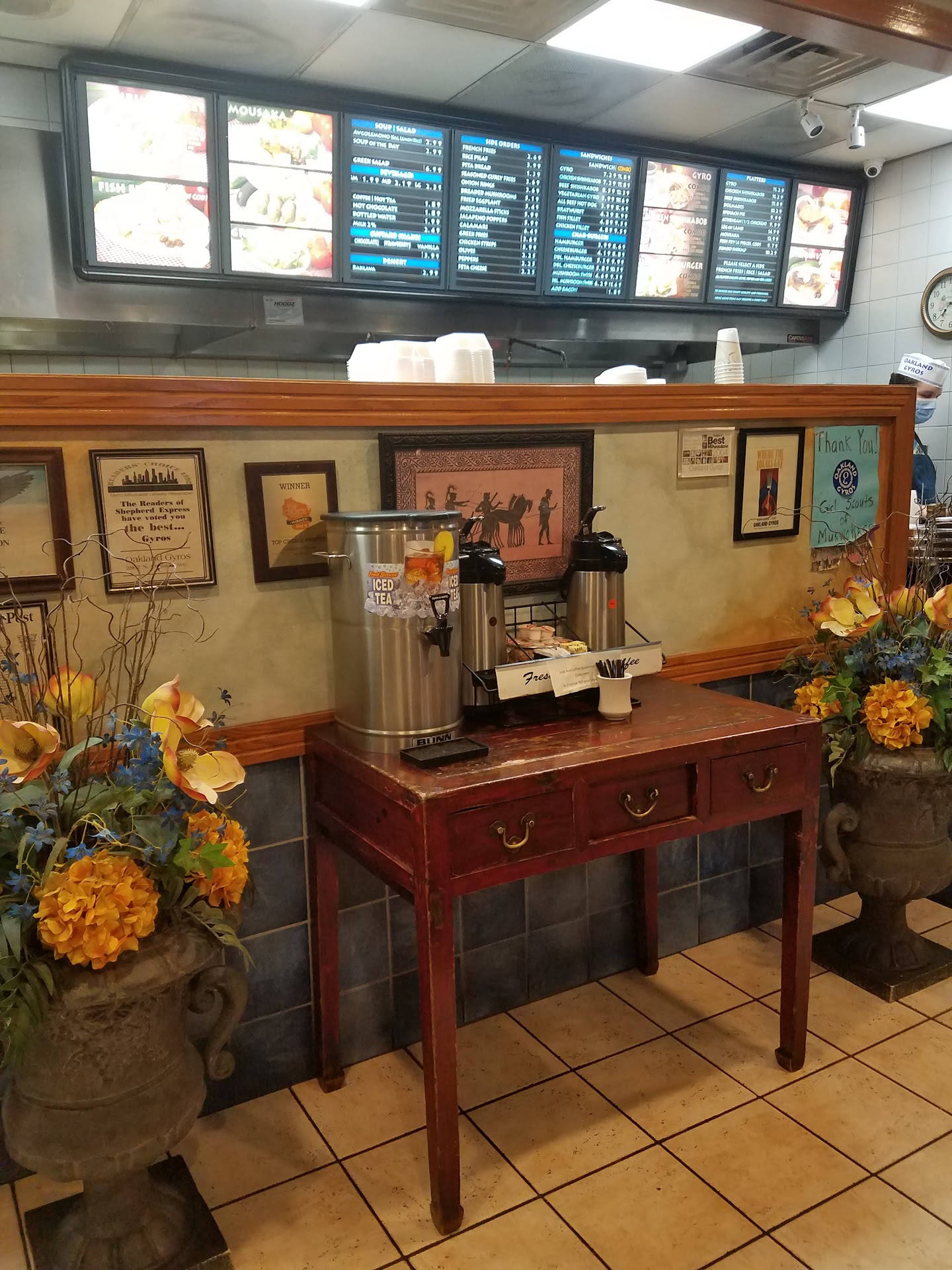 Read moreThis restaurant is very neat & clean. I've tried contacting the restaurant for 3 months & the number has a voicemail "that has not been set up yet." Up until 4 months ago, everything was always great here, and then it wasn't. I ordered a Beef Kabob platter with french fries, & they put the fries in the same container with the Beef chunks, laying in the beef juice with the onions and tomato slice, so by the time I got home 40 min. later, the fries were all mushy & disgusting, & there was no Pita bread in there. The next time I went there, I ordered the Beef Kabob Platter with the Greek Salad, and the beef chunks were very red inside, cooked very rare to the point that the juice in the carton was pink, and the salad had 2 pieces of Feta, 3 half slices of cucumber, 3 slices of a bad tomato, & tons of lettuce, with a Salad Dressing that smelled of Oil and had no flavor at all, other than oil. Recently, I thought I'd give one more try, and again ordered the Beef Kabob Platter with the Greek Salad, & this time the beef was a very dark pink inside, too pink, and this salad was such a waste--2 pieces of Feta, 3 chunks of a very bad tomato, 3 half chunks of a cucumber, 3 peppers, 4 olives, and the Dressing was almost nothing but oil again, no taste whatsoever, except of oil. I'm so disappointed because I used to go to this location quite often, at least twice a week, and as of 3 or 4 months ago, this now seems to be the new service, and no way to contact anyone by phone, and the nice young lady at the counter didn't seem to understand what I was trying to tell her in the past. I hope that a manager sees this & starts watching the food going out, because personally, I don't ever eat under cooked meat, and the Beef was never pink in the past--it was always well done, as it should be, and the Greek Salads with the platters were always very fresh & delicious with the best Salad Dressing, but that all changed in a bad way. Thank you for the many years of good food...