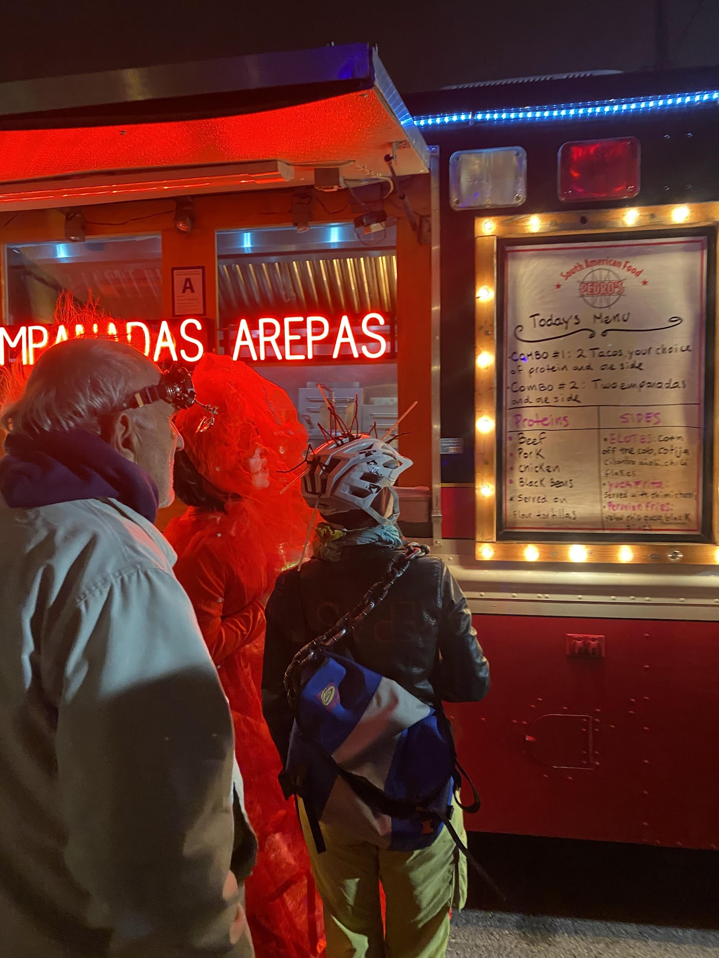 Our menu was arepas and street tacos with multiple protein options, elotes, plantain chips and salsa, and palmitas salad. Our guests loved ordering from a food truck and Pedro and his crew were friendly and efficient - serving up 80-100 meals in 45 minutes or less. Lots of our guests went back up for seconds, and not because the portions weren't generous, but because the food was that dang good!