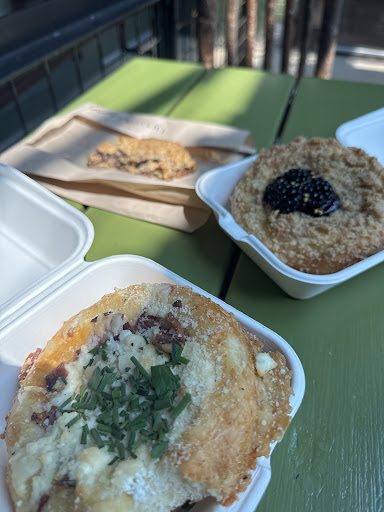 I also tried the bacon and blackberry brioches which both had a perfect spongy texture. The cheese bacon and scallions were so satisfying on the one, and the streusel topping, jam and sweet cheese on the other even had a mild herbaceous note, like rosemary or anise.