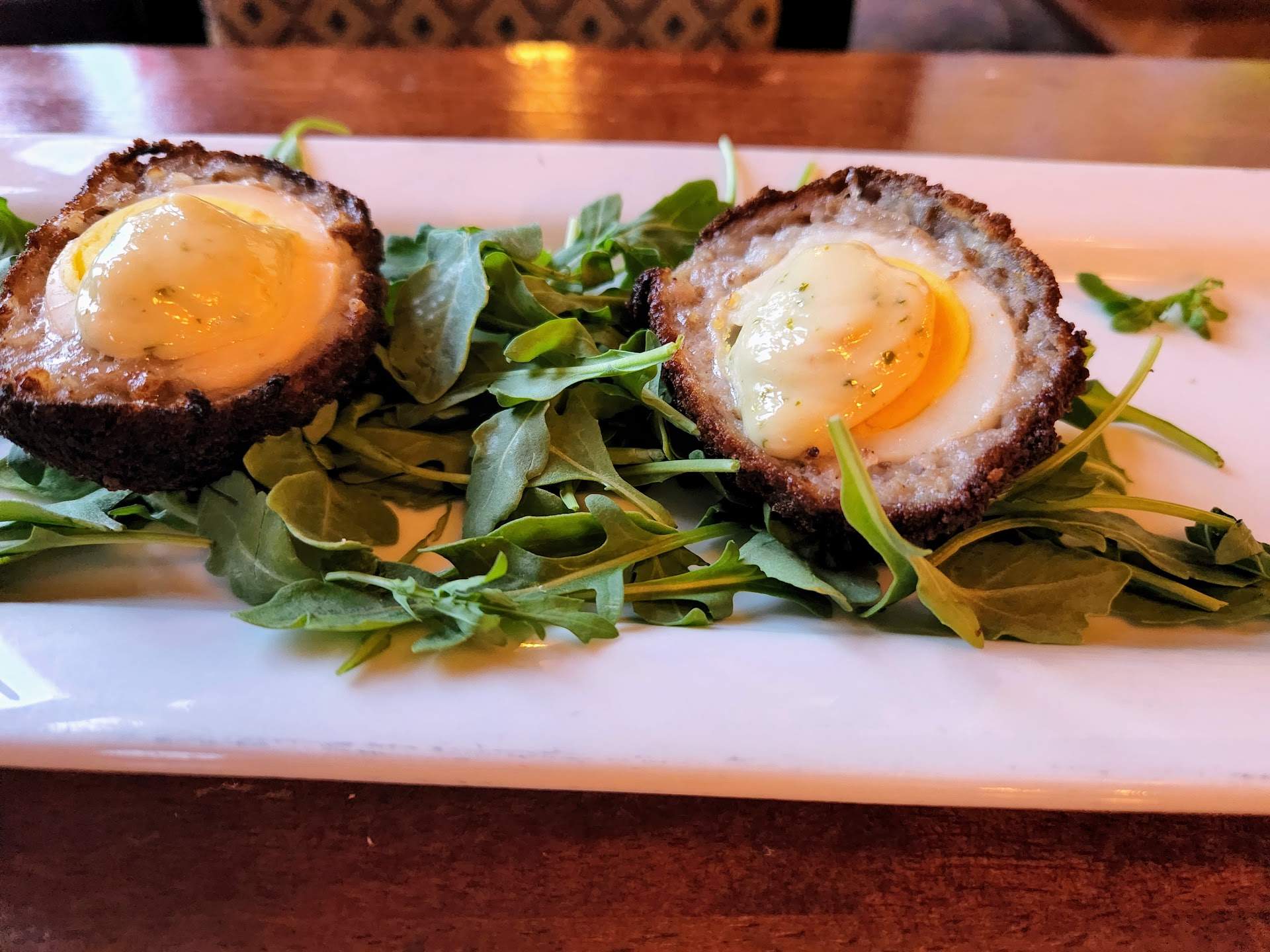 For lunch I had an entree of Bangers and Mash with a side of Scotch Eggs, and a couple beers. My friends had an order of Fish and Chips, Cheese curds, and Scotch Eggs.