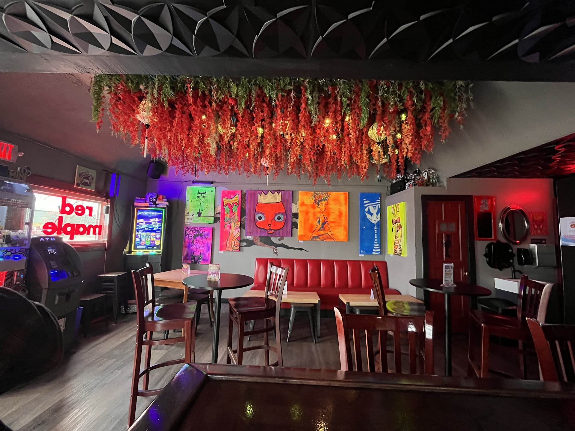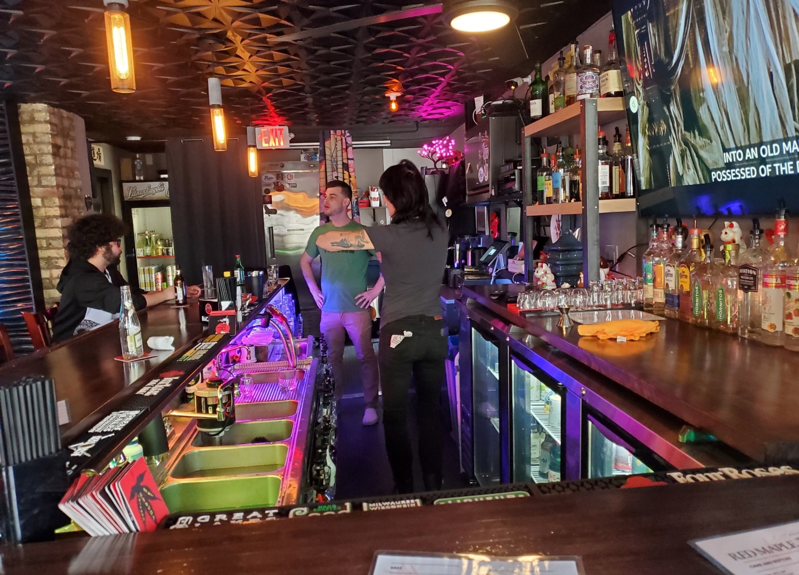 While the Red Maple has all the attributes of a welcoming Wisconsin corner tavern, it has enough surprises to make it stand out and draw you in. The proprietors have utilized an Asian theme, both in decor and what they serve, that tantalizes and beguiles. Small, but with a dark exotic intimacy, the excitement begins as soon as you enter Red Maple. They took extra effort to design a unique bar.