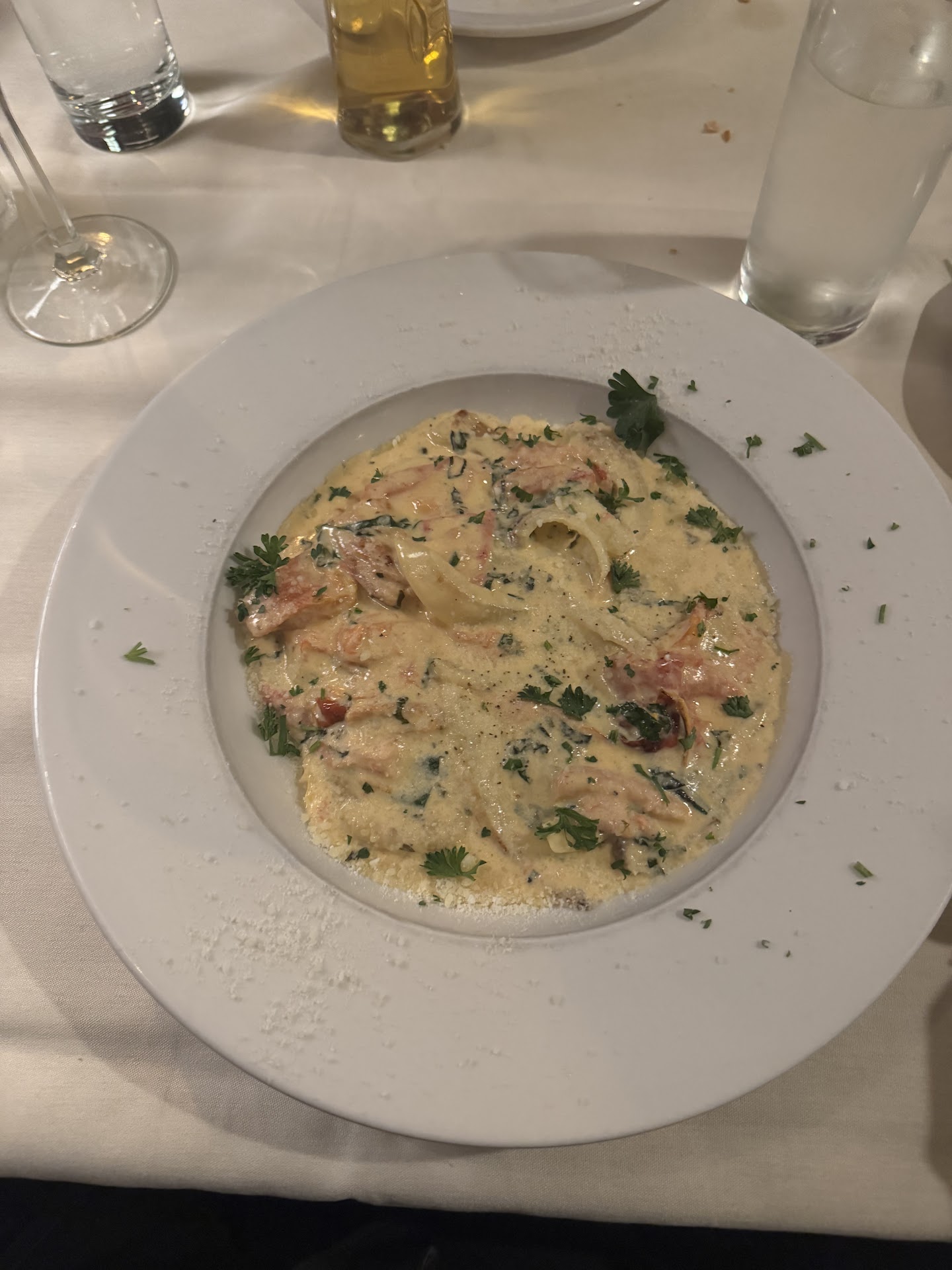 The pizza arrived undercooked and cold and my seafood pasta was best described as spaghetti O’s in flavor with a couple of shrimp and scallops. While the seafood was good the pasta left a lot to be desired.